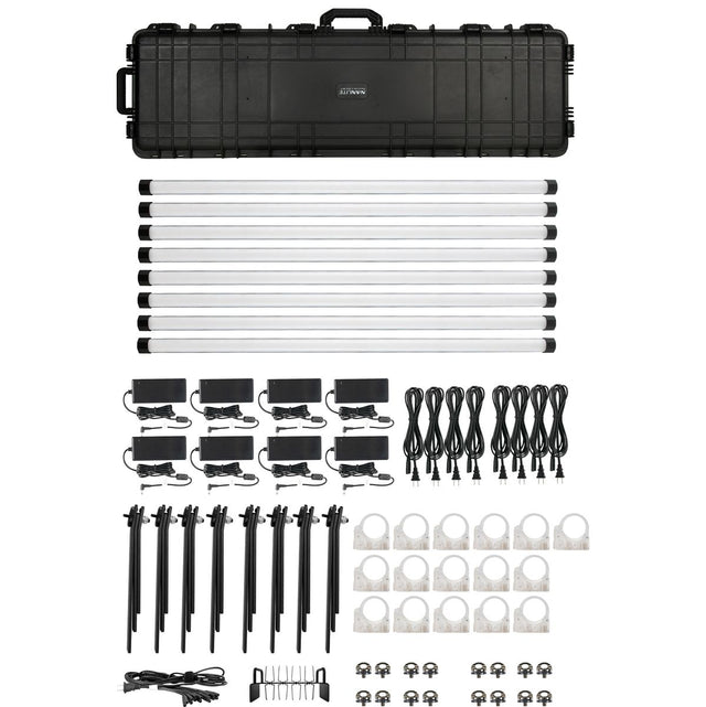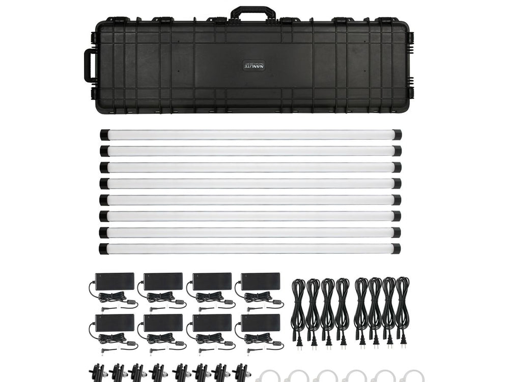 The Nanlite Pavotube II 30XR 8KIT is a comprehensive lighting solution comprising eight LED tube lights, essential accessories, and a durable carrying case. This lighting kit is perfect for photographers, filmmakers, and content creators who demand versatility and portability.