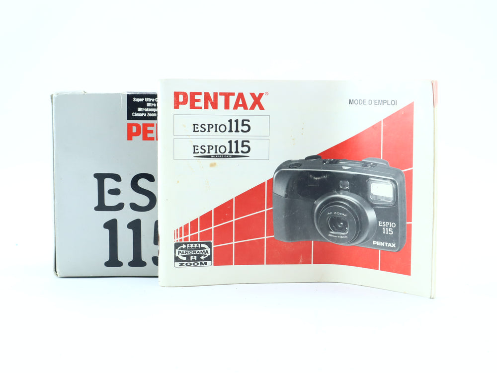 The Pentax Espio 115 (serial no. 8296529) is a stylish and reliable 35mm compact autofocus camera featuring a high-quality 38–115mm zoom lens. Designed for versatility, it combines Pentax’s precision optics with fully automatic operation, making it ideal for travel, portraits, and everyday photography. With features like autofocus, automatic exposure, built-in flash, and panoramic mode, the Espio 115 offers excellent image quality in a sleek, easy-to-carry design.