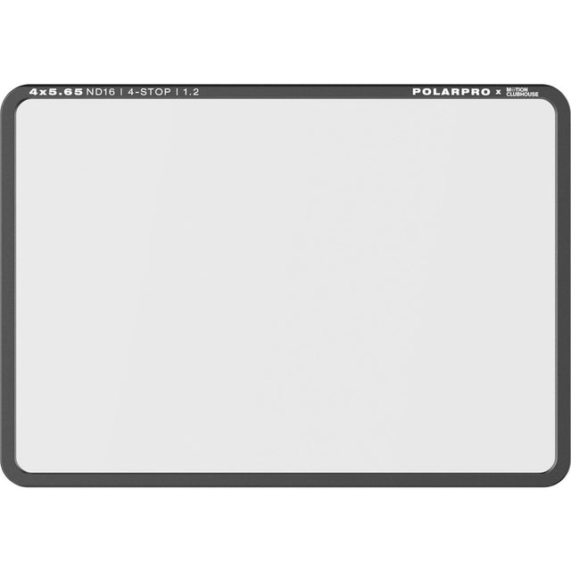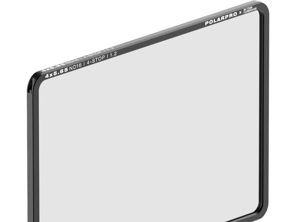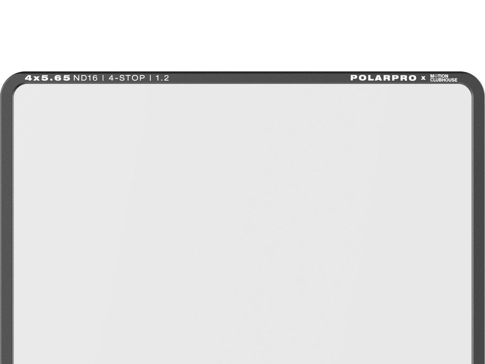 The PolarPro ND16 | 4x5.65" Filter is a cutting-edge, innovative filter measuring 4x5. This filter is uniquely ensconced within a custom-manufactured CNC aluminum frame, safeguarding the glass from the damaging effects of fingerprints, scratching, drops, or clamps. It showcases laser etchings for accurate filter identification and as a token of collaboration with industry professionals, Motion Clubhouse.
