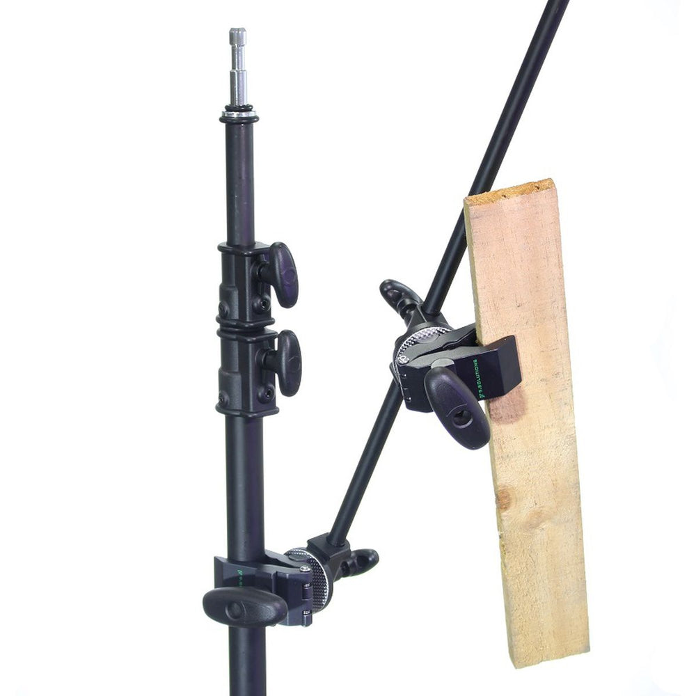 The 9.Solutions Python Clamp is a flexible piece of equipment that can adapt for use with numerous accessories in the realm of photography and videography. This versatile clamp can be employed in association with a grip head; in this case, the two discs can be swapped out for the Python Clamp. Furthermore, you can also utilize the clamp in conjunction with a truss coupler to solidly attach accessories to sturdy construction materials like wooden planks.
