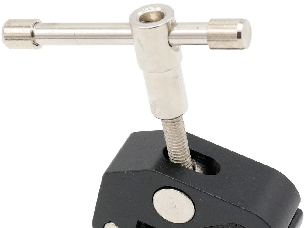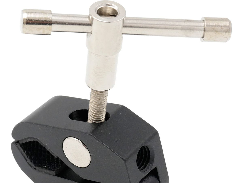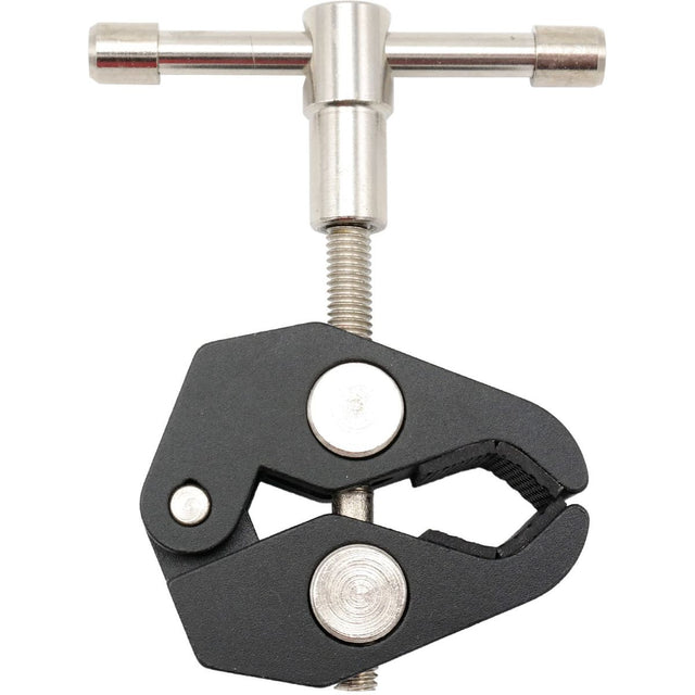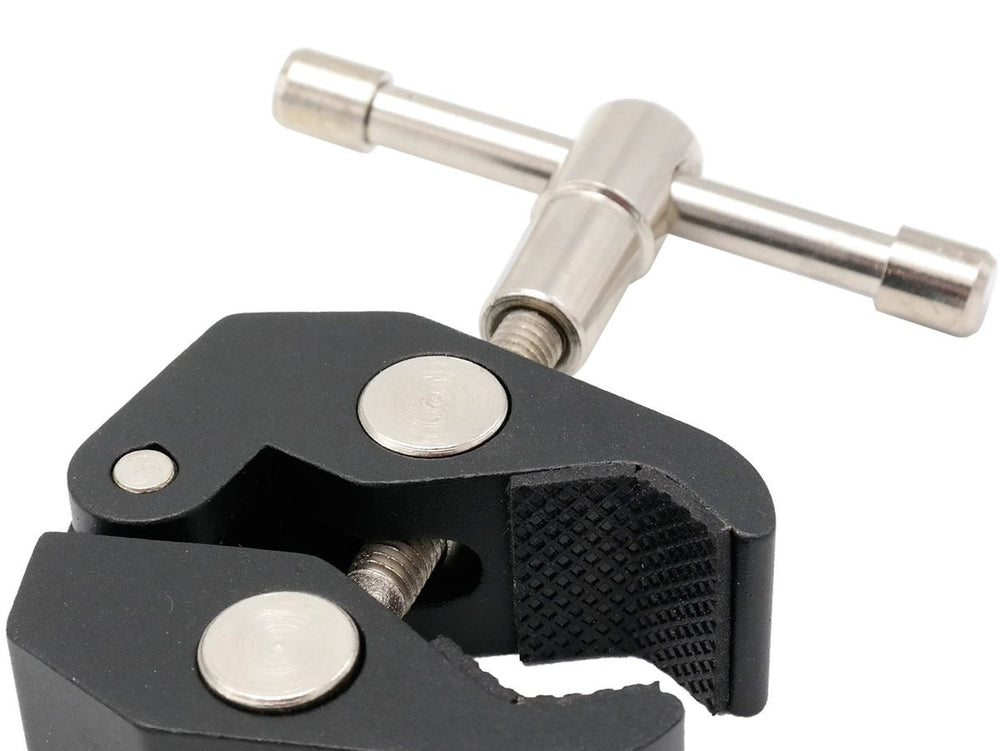 The Caruba Small Screw Clamp is a multi-purpose tool that is designed to make the attachment of studio equipment and other accessories as quick and effortless as possible. Additionally, it is well-suited for hanging reflector screens or background cloths in a photography or film shooting environment. The clamp has both 1/4" and 3/8" screw thread connectors, making it versatile and user-friendly.