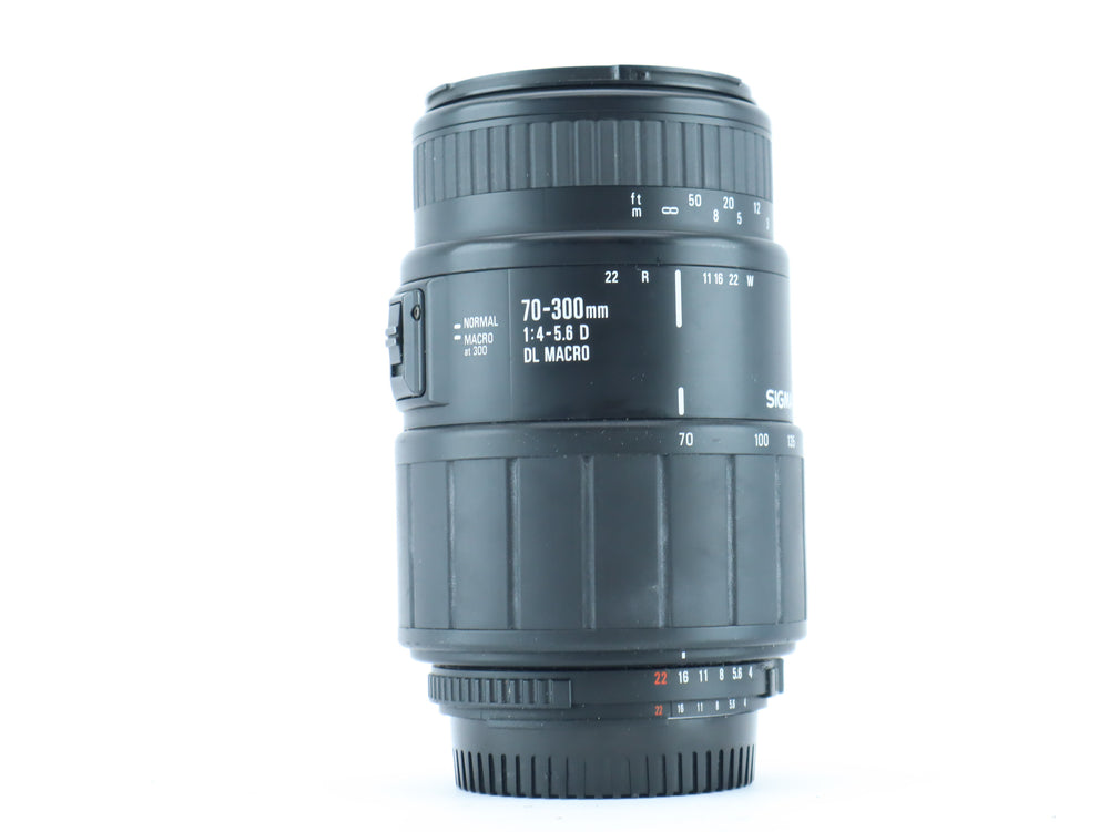 The Sigma 70–300mm f/4–5.6 DL Macro is a versatile telephoto zoom lens designed for photographers looking to cover everything from portraits to wildlife. It offers a useful focal range and features a dedicated macro mode between 200–300mm, allowing for close-up photography with a 1:2 magnification ratio. Ideal for both film and digital SLRs, this lens delivers good optical performance at an affordable price.