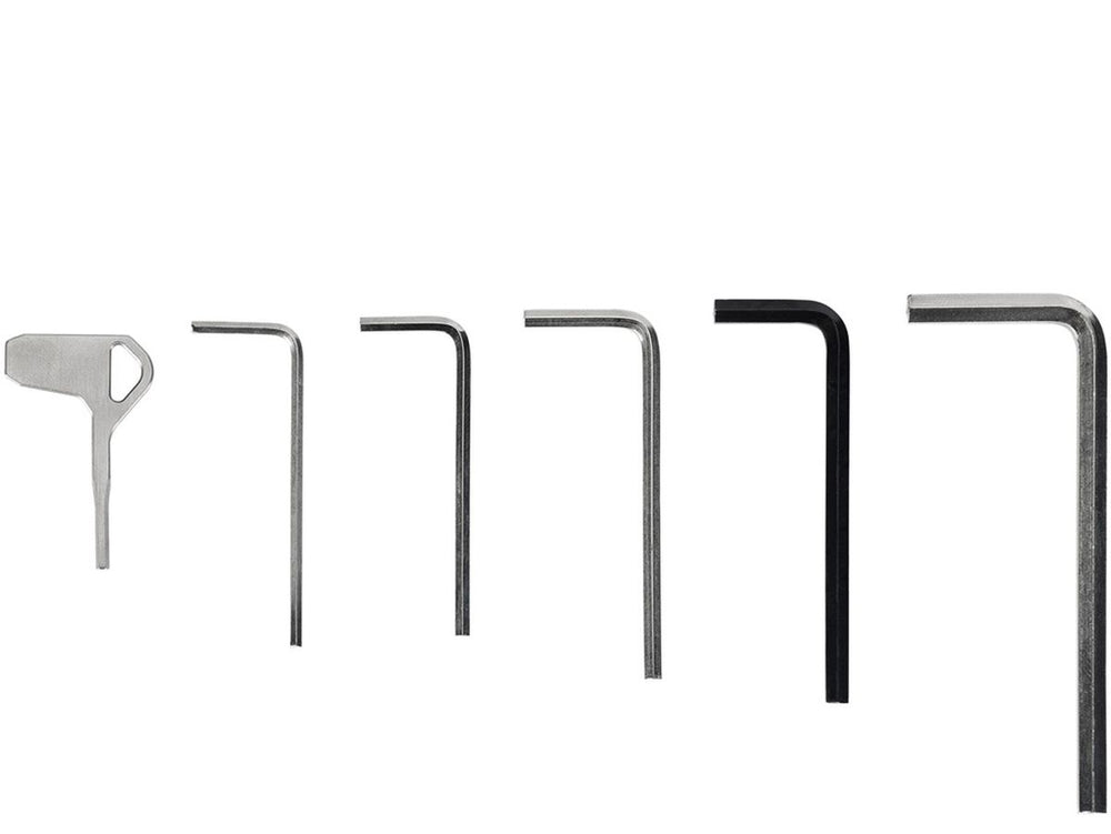 - Hex keys: 2.5 mm, 3 mm, 4 mm, 3/16”