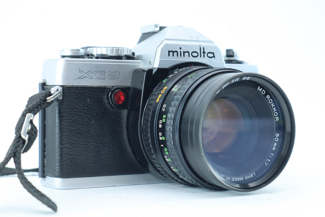 The Minolta XG-2 is a stylish and compact 35mm SLR camera from the late 1970s, offering aperture priority auto exposure and full manual control. It’s a great camera for both beginners and enthusiasts who want a classic film shooting experience. Paired with the bright and sharp MD Rokkor 50mm f/1.7 lens, this set is perfect for portraits, street, and general photography.