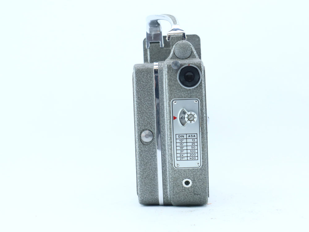 The Nizo Heliomatic 8 Focovario is a precision-engineered 8mm movie camera, made in Germany and paired with a premium P. Angenieux Paris f/9–36mm f/1.4 Zoom lens. Known for its optical quality, the Angenieux lens offers superb image rendering with excellent low-light capability thanks to its fast f/1.4 aperture. This combination makes the camera a favorite among collectors and Super 8/Double 8 enthusiasts looking for top-tier glass and classic mechanical performance.