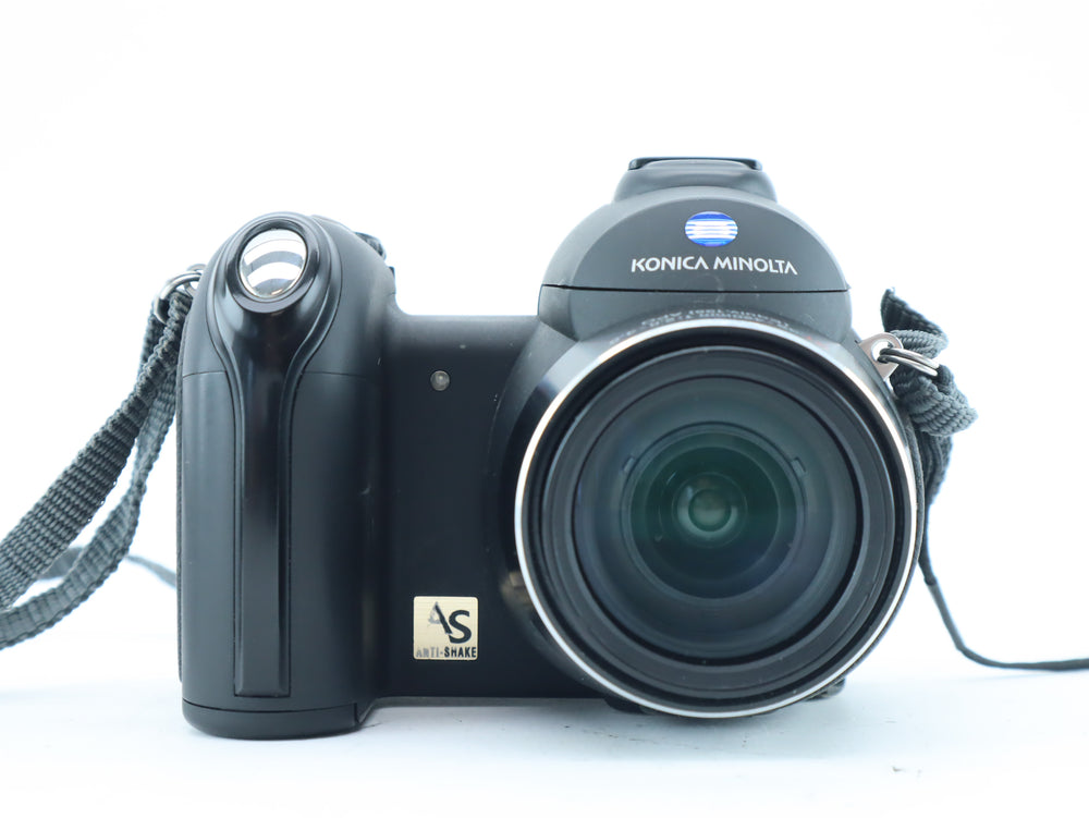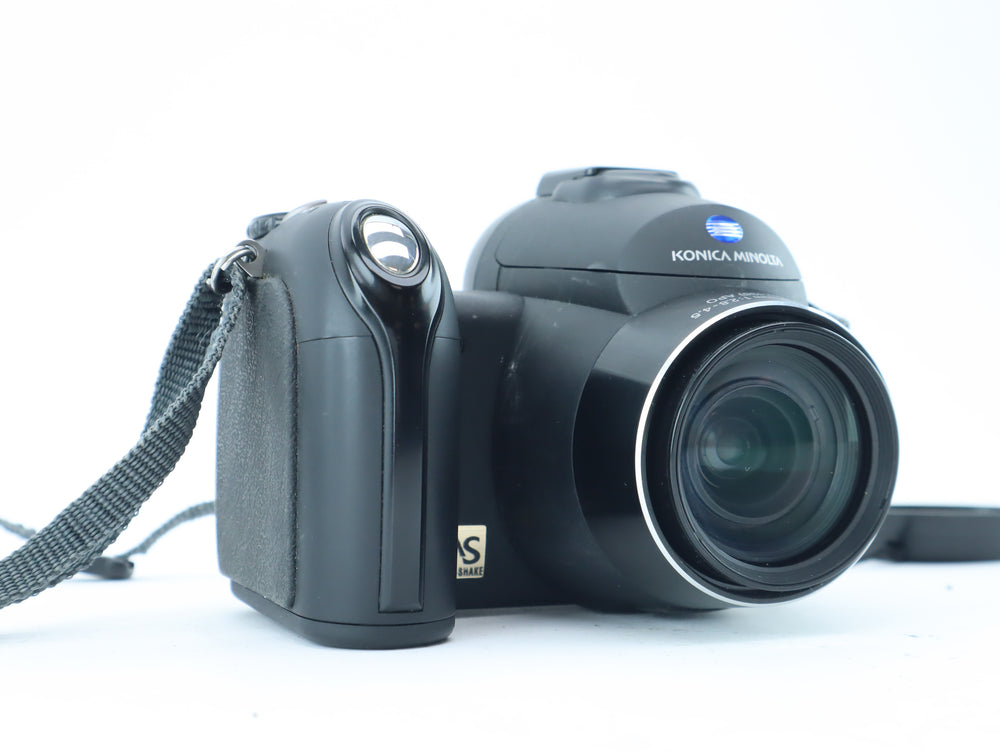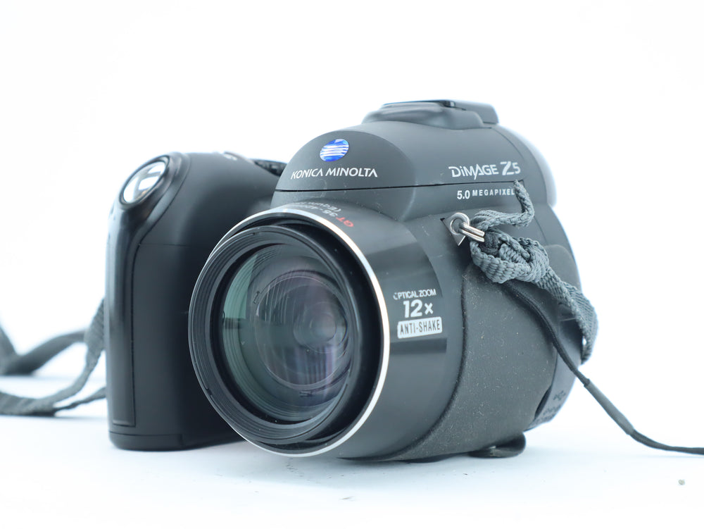 The Konica Minolta DiMAGE Z5 is a versatile 5-megapixel digital bridge camera with a powerful 12x optical zoom lens equivalent to 35–420mm in 35mm terms. Featuring an APO GT lens, Anti-Shake image stabilization, and fast autofocus with subject tracking, it's a compact all-in-one solution for travel, wildlife, or everyday use. Its ergonomic grip and electronic viewfinder offer a true SLR-like shooting experience in a lightweight package.