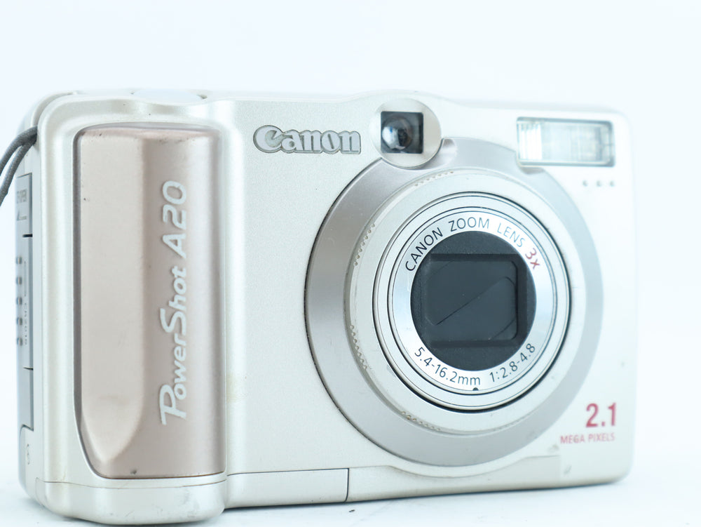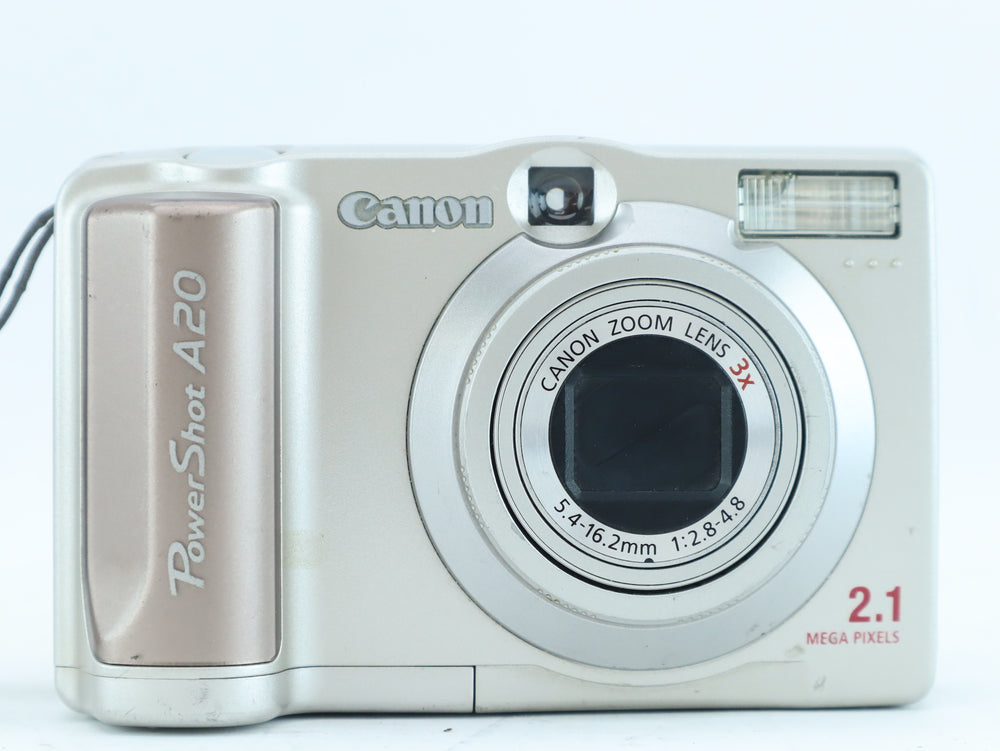 The Canon PowerShot A20 is an early-generation digital compact camera offering simple operation and reliable Canon build quality. With a 2.1 megapixel sensor, it is a classic model from the early digital era, suitable for basic photography and collectors of vintage digital cameras.