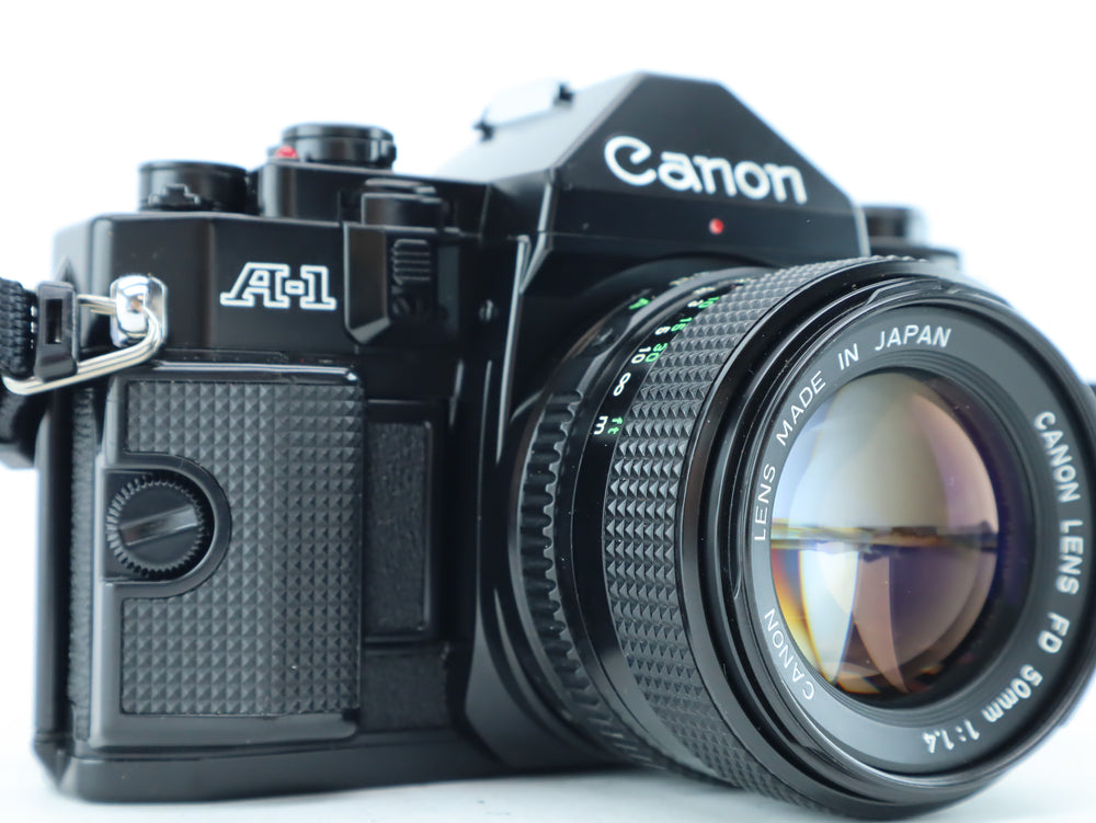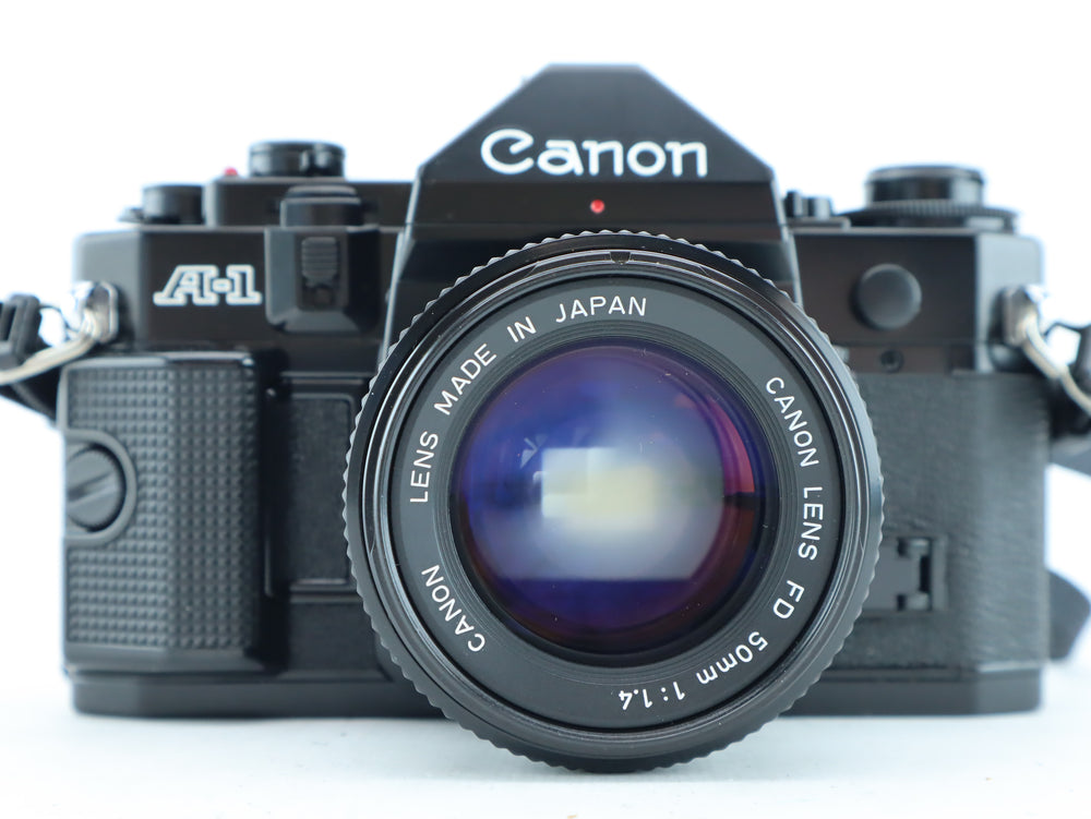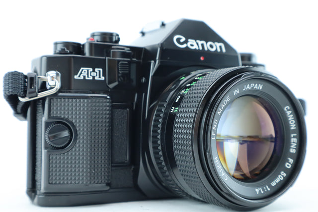 The Canon A-1 is a 35mm SLR camera, introduced in 1978, and was the first SLR to offer fully automatic Program mode alongside Shutter-Priority, Aperture-Priority, and full Manual control. This camera is highly regarded by photographers and collectors for its reliable electronic shutter, versatile exposure modes, and ergonomic design. Paired with the Canon FD 50mm f/1.4, a fast and sharp prime lens, this setup is perfect for portraits, street photography, and low-light shooting.