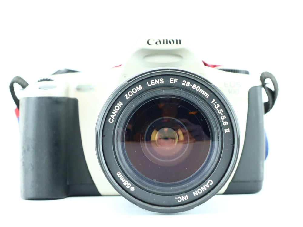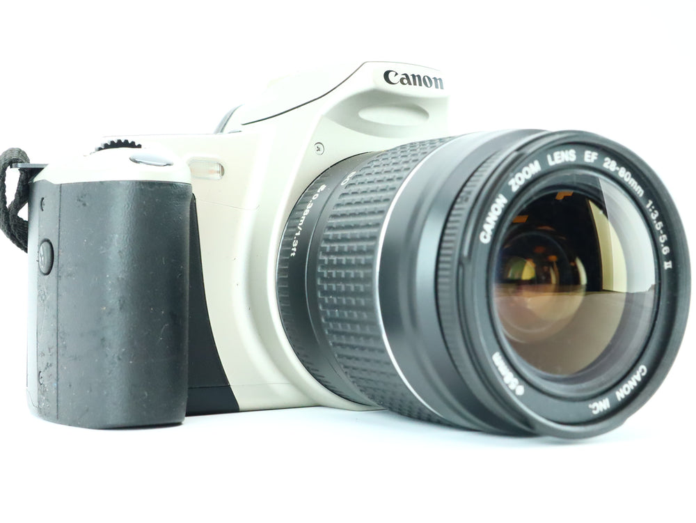 The Canon EOS 300 (also known as the Rebel 2000 in some markets) is a lightweight and fully automatic 35mm film SLR, introduced in 1999. With its modern autofocus system, multiple shooting modes, and full compatibility with Canon EF lenses, it’s a perfect choice for both beginners and advanced film shooters. Paired with the versatile Canon EF 28–80mm f/3.5–5.6 II zoom lens, this kit is ideal for travel, portraits, and everyday photography.