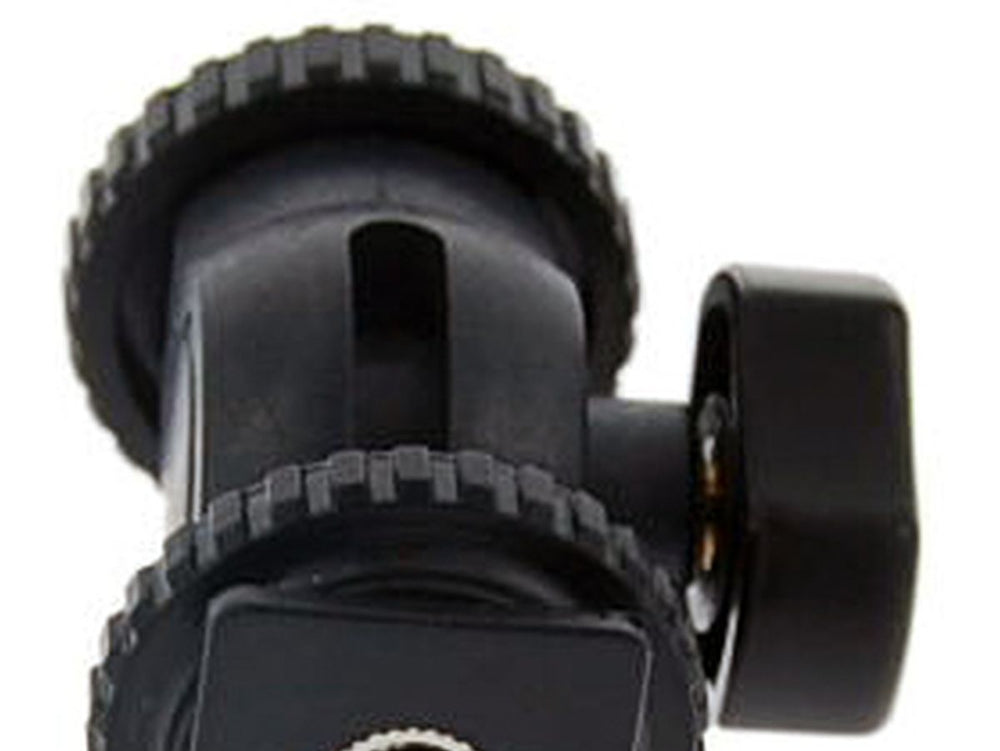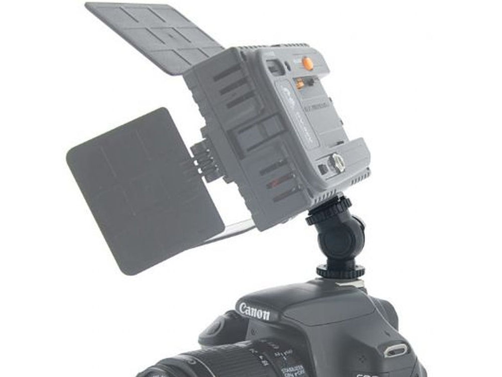 The Falcon Eyes Camera CLD-5MF Tilting Bracket is a vital tool when you're looking to attach various accessories featuring a 1/4" female thread to your camera like an LED light, for example. This Tilting Bracket offers the added benefit of being positioned in an array of angles. It can rotate a complete 360 degrees around its axis and it can tilt 90 degrees both forwards and backwards. Installation onto the camera is stress-free, thanks to the hot shoe connection.