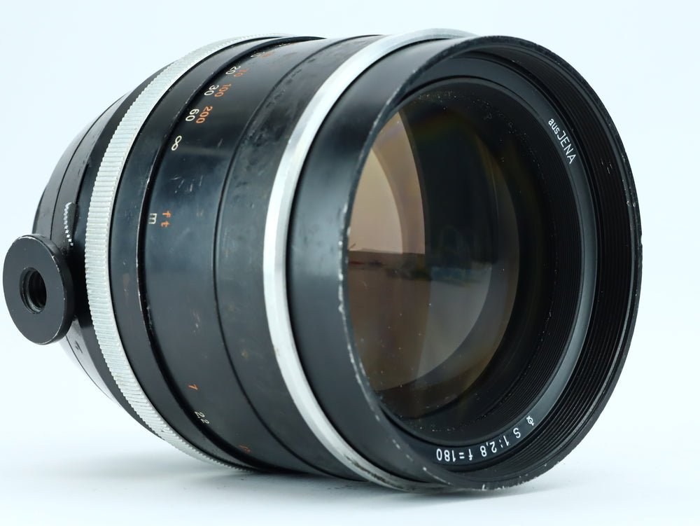 The aus JENA S 180mm f/2.8, serial number 7205755, is a large-aperture telephoto prime lens made in East Germany, most likely by Carl Zeiss Jena, marketed under the "aus JENA" export branding. This lens is known for its excellent build quality, creamy bokeh, and sharp rendering, especially when stopped down.