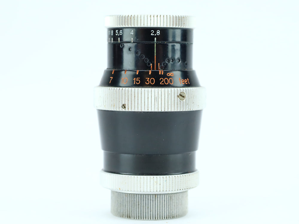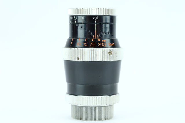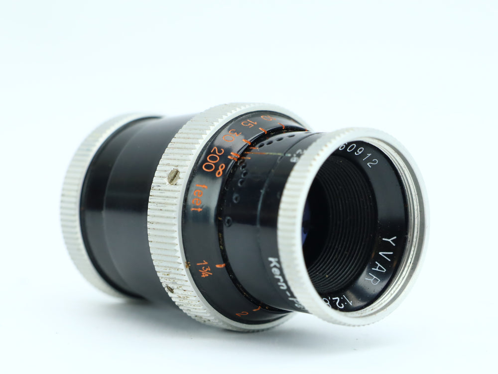 The Yvar 36mm f/2.8 AR, serial number 560912, is a classic Swiss-made cine lens manufactured by Kern-Paillard, a company renowned for precision optics, particularly for Bolex 16mm film cameras. The Yvar series is prized for its sharpness, compact design, and smooth mechanical operation. The 36mm focal length on 16mm film offers a moderate telephoto perspective, ideal for portraits, nature, and compressed compositions.