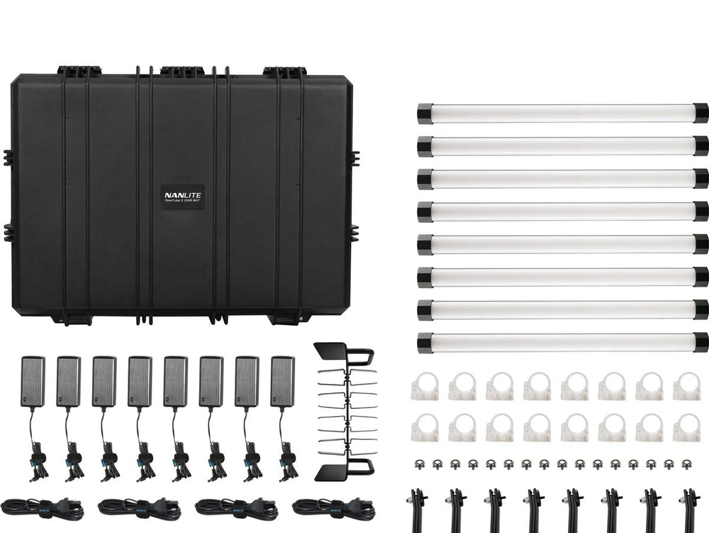 The Nanlite Pavotube II 15XR 8KIT is an impressive package that includes eight LED light tubes, accessories, and a durable carrying case, designed for both photography and videography enthusiasts.