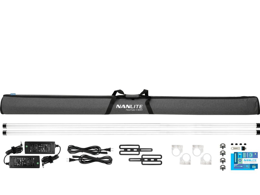 The Nanlite Pavotube II 60XR 2KIT-S consists of a pair of 60XR LED tube lights, bundled with essential accessories and a padded carrying case. This innovative lighting solution plays a pivotal role in enhancing production quality, catering to the needs of creatives globally.