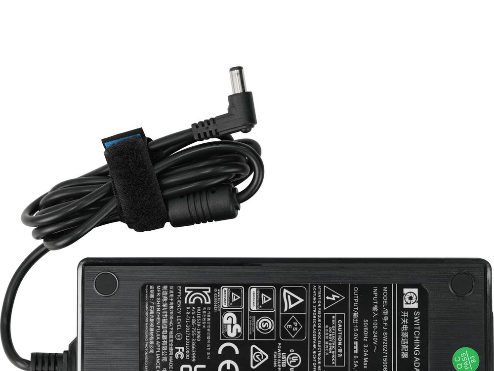 Powered by an internal 8800mAh lithium-ion battery, the Pavotube II 60XR can operate wirelessly for up to 1 hour and 57 minutes at maximum brightness. The battery charges fully in 5 hours and 30 minutes using the included AC adapters, which also allow continuous power during extended shoots.