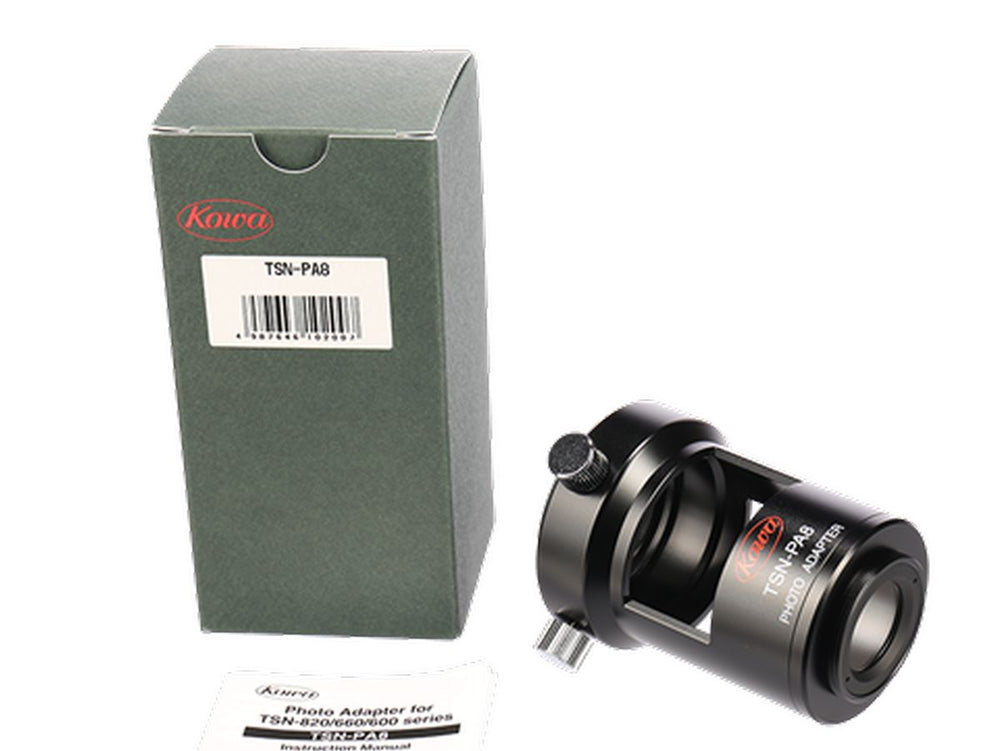 The TSN-PA8 is a camera adapter from Kowa, designed to be compatible with a number of spotting scopes, including the TSN820, TSN820M, TSN-610, TSN-601/TS-602, and TSN-1/2/3/4 series. This adapter easily fits over your spotting scope's eyepiece, turning it into a camera lens.