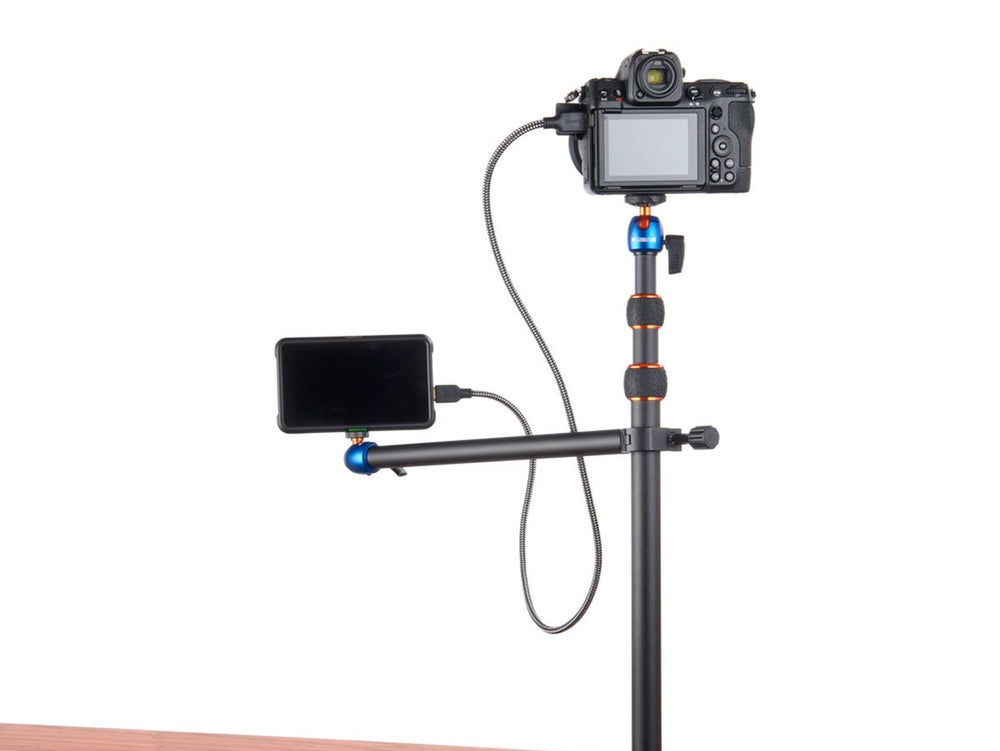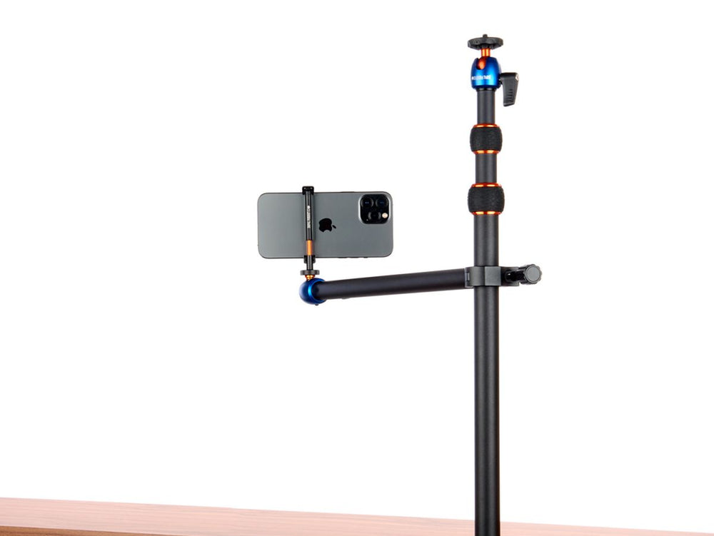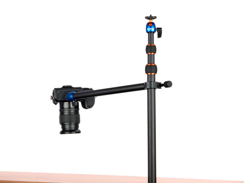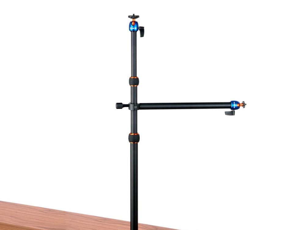 - Desk support system for lightweight cameras, smartphones, and accessories up to 1 kg