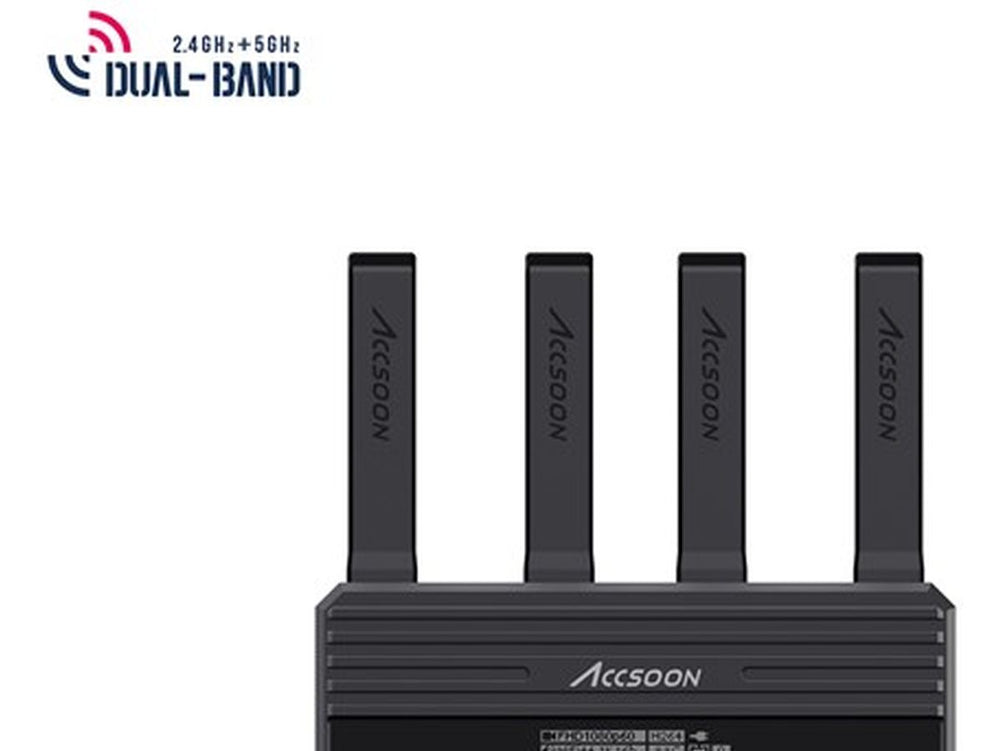 The innovative Accsoon transmitter simultaneously broadcasts two identical images, at 2.4GHz and 5GHz frequencies, originated from your camera. As these signals arrive at your receiver, they coalesce into a high-quality video feed. This unique method of signal transmission guarantees a steady network connection.