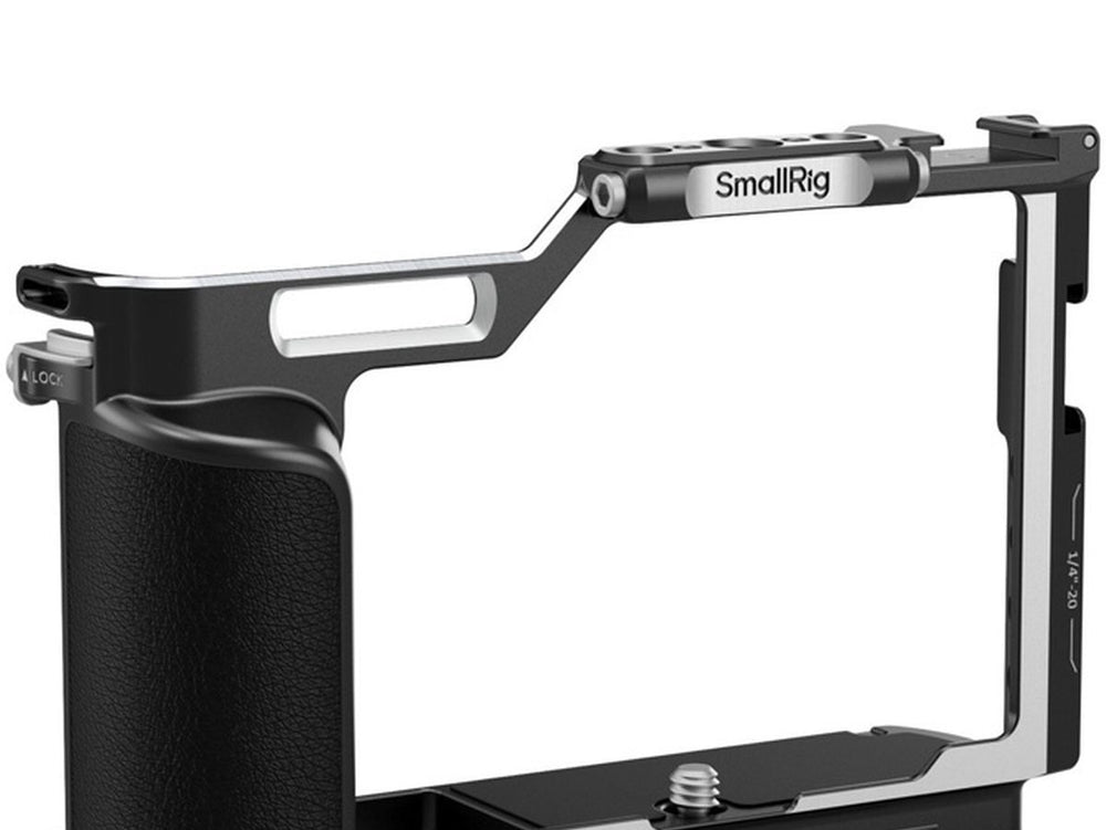 The cage firmly attaches to the camera using a 1/4"-20 screw at the base, while lateral securing is attained through the right-sided lock. The cage's design incorporates silicone gaskets in certain areas to preclude potential scrapes on the camera.