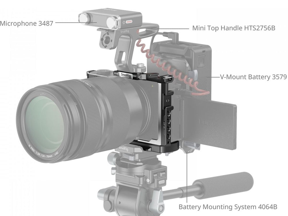 Functionality is amplified with the cage, thanks to the integrated 1/4"-20 thread holes, ARRI 3/8-16" locating hole, cold shoe, strap slot, etc., enabling mounting of optional accessories. Examples encompass handle 2756B, microphone 3487, LED light, strap 3848, etc., to ramp up your video content creation game.