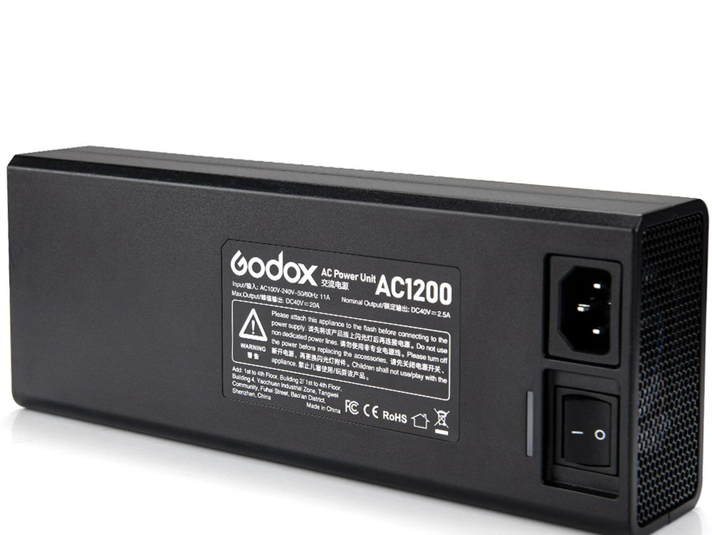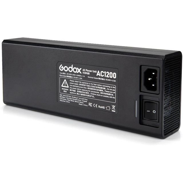 The Godox AC1200 is a specialized power adapter designed for the AD1200Pro flash units. This device seamlessly connects the power pack's base to a standard electrical outlet, allowing for AC operation. It provides a continuous power supply that is perfect for studio photography or locations where AC power is readily available. With a versatile voltage range of 100 to 240 volts, this adapter can be utilized globally without any issues.