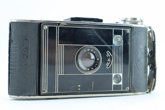 The Agfa Billy-Clack is a stylish and collectible folding camera produced in Germany in the late 1930s. Designed for 120 roll film, it captures large 6×9 cm negatives—perfect for high-resolution vintage photography. With its art deco design, pop-out bellows, and simple operation, the Billy-Clack is a favourite among collectors and those experimenting with medium format film for the first time.