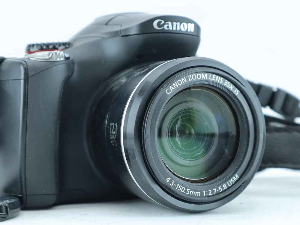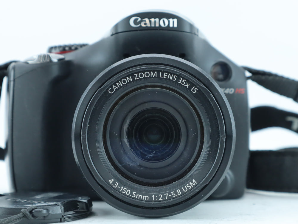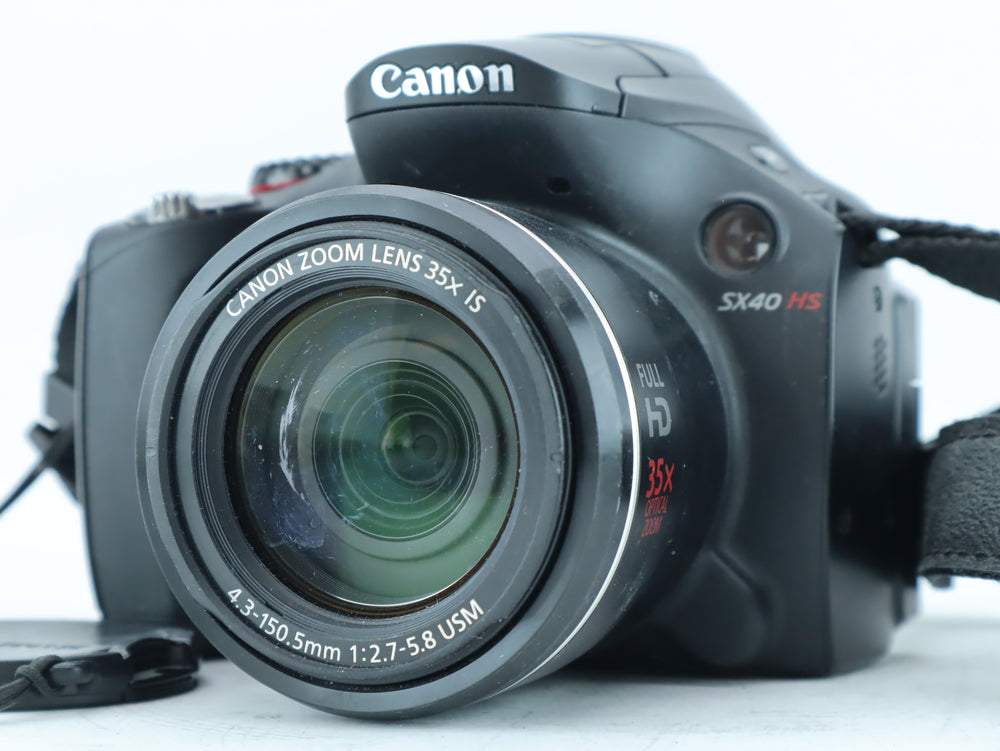 The Canon PowerShot SX40 HS is a powerful digital bridge camera featuring an impressive 35× optical zoom lens with Image Stabilization.