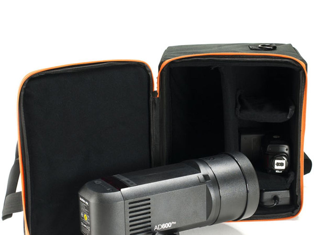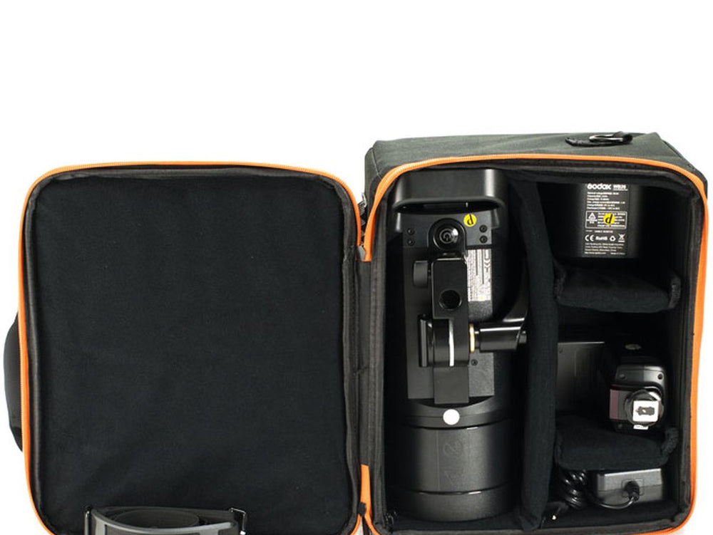 Beyond just the studio flash, the bag houses additional storage space for associated essentials. There's plenty of room for the battery, all necessary cables, and a handful of other small accessories.
