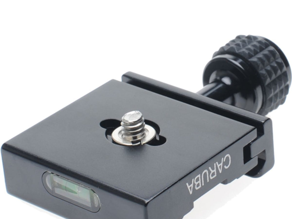 The Caruba Quick-Load Plate Base is an innovative device designed with a strength-loaded clamp featuring a screw-knob. This versatile tool can be efficiently attached to tripods, monopods, or a ball head. With its solid construction, it boasts a 3/8" threading, offering higher levels of gripping strength, making it an essential addition to your photography equipment.