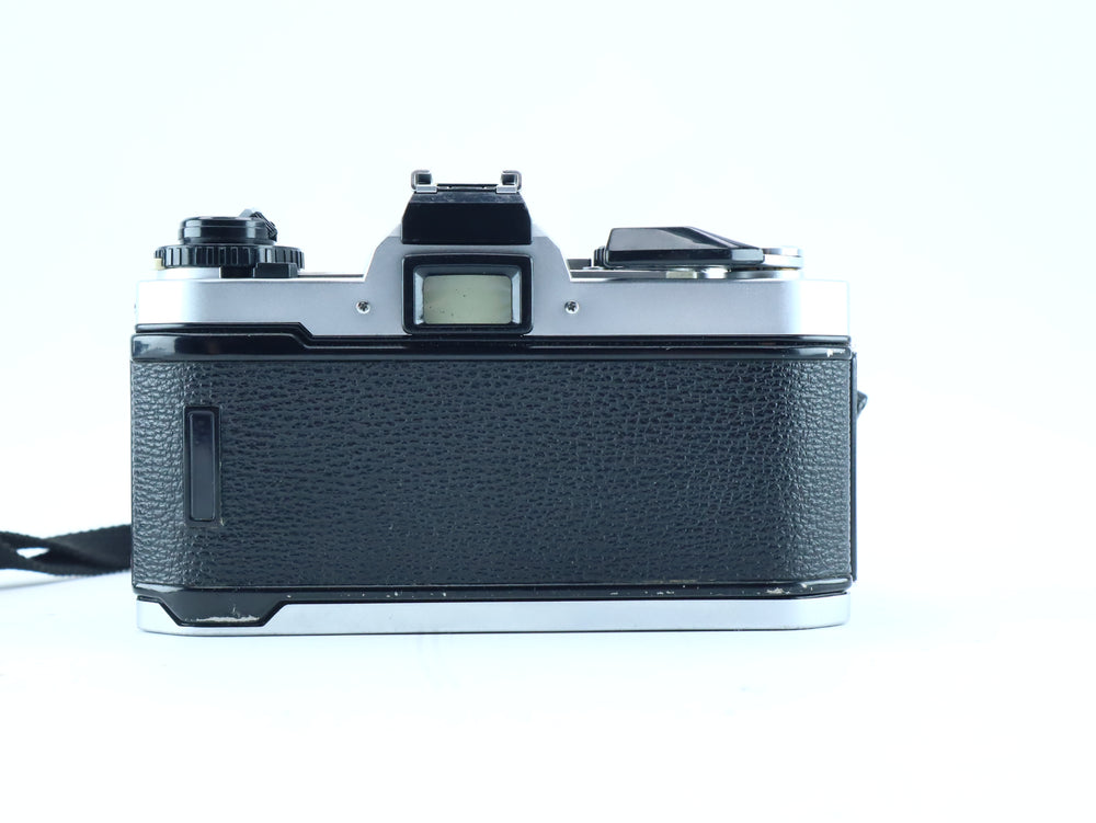 Used – Good condition. Camera and lens show light cosmetic wear. Shutter, meter, and film advance tested and working correctly. Lens glass is clean, aperture and focus rings operate smoothly.