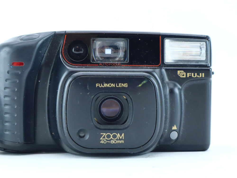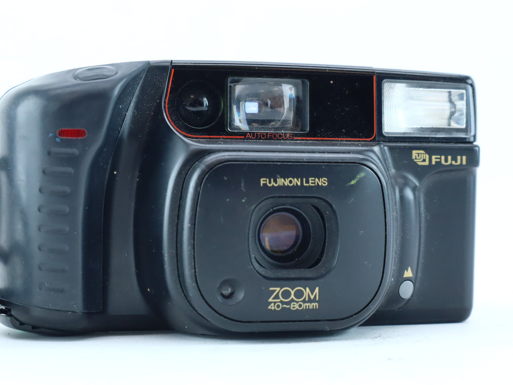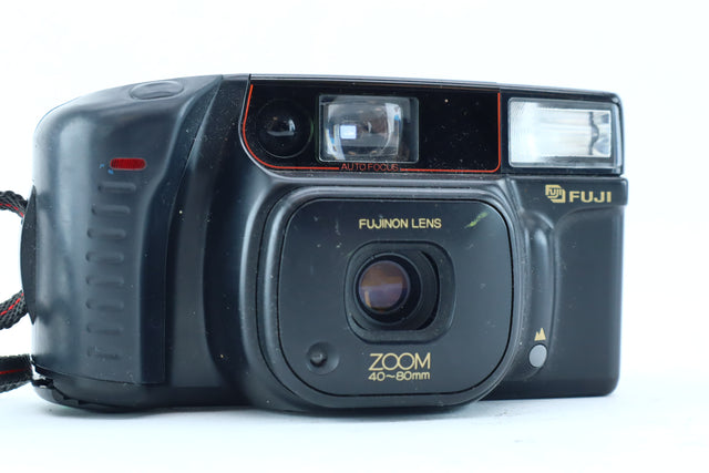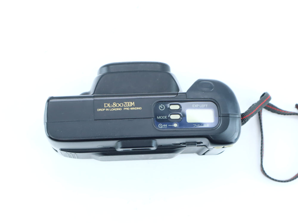 The Fujifilm DL-800 Zoom is a fully automatic 35mm point-and-shoot film camera, designed for ease of use and reliable everyday photography. With its built-in zoom lens and automatic exposure, this compact camera is ideal for casual shooters, travelers, or anyone looking to enjoy the nostalgic charm of film without the complexity of manual controls.