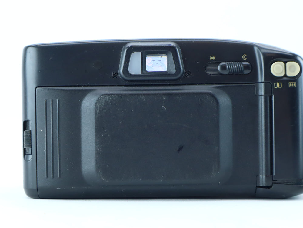 Used – Good condition. Camera powers on and flash charges. Zoom and film functions tested and working. Light cosmetic wear from regular use.