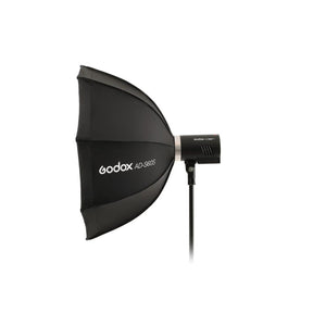 The Godox AD-S60S is a high-quality collapsible softbox with a 60 cm diameter, designed specifically for the Godox AD300Pro, AD400Pro, and other strobes using the Godox mount. Its parabolic design delivers even, soft light with smooth falloff — perfect for portraits, product photography, or location shoots. The included grid offers added light control and directionality.