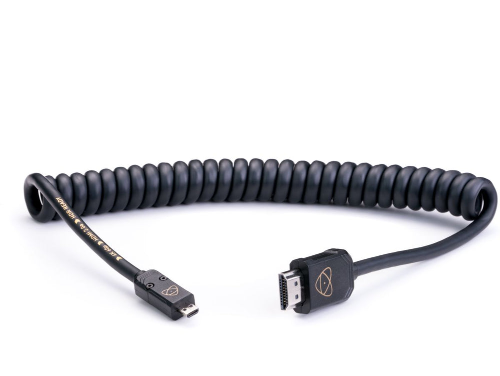 The Atomos 4K60p C2 HDMI cable, measuring 40 centimeters, is designed to connect HDMI devices to Micro HDMI ports, ensuring you get the most out of your Atomos gear. This cable adheres to HDMI 2.0 standards and delivers impressive video quality with 4K resolution at 60 frames per second, as well as HD video at a remarkable 240 frames per second. A unique feature of this cable is its coiled design, which helps prevent tangling and makes it convenient for storage.