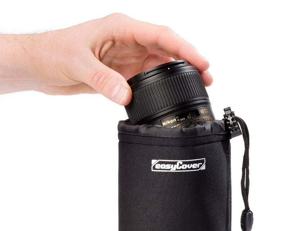 The X-Small version of the EasyCover Lens Case features a soft yet robust neoprene construction. This design choice ensures that the case is lightweight while offering exceptional shock absorption capabilities. Your lens stays well-protected inside the case, which also boasts waterproof capabilities. The case includes a hook that allows you to secure it to your bag or belt loop with ease.