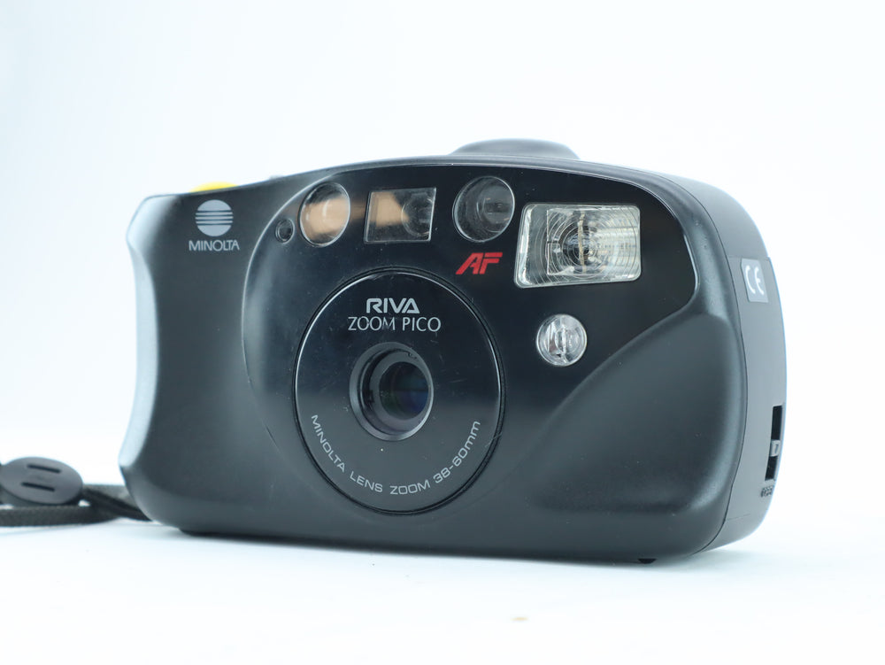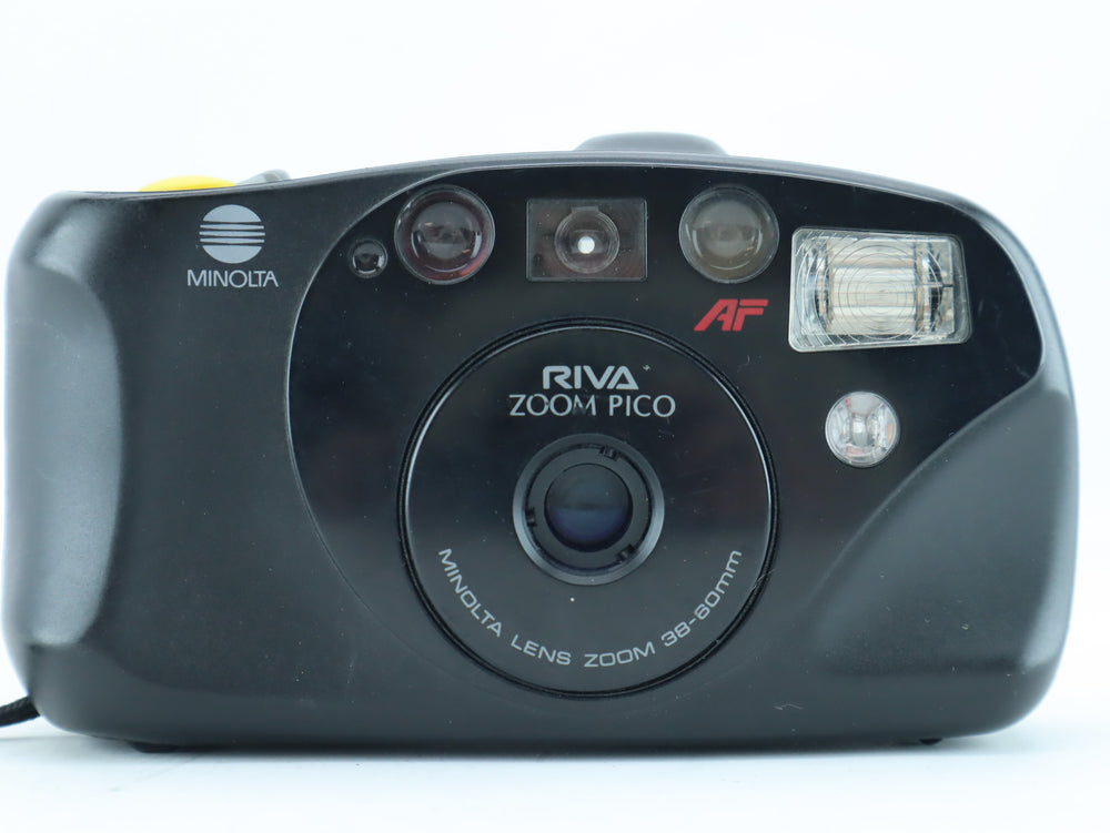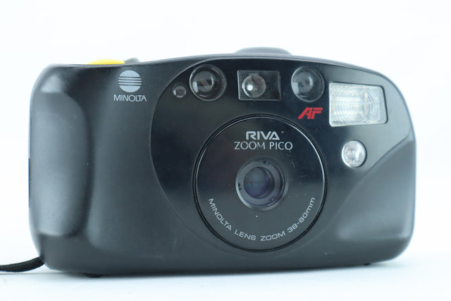 The Minolta Riva Zoom Pico is a compact 35mm autofocus camera featuring a practical 38–60mm zoom lens.