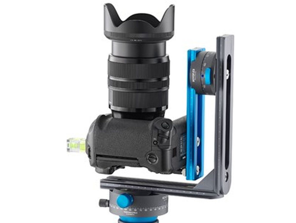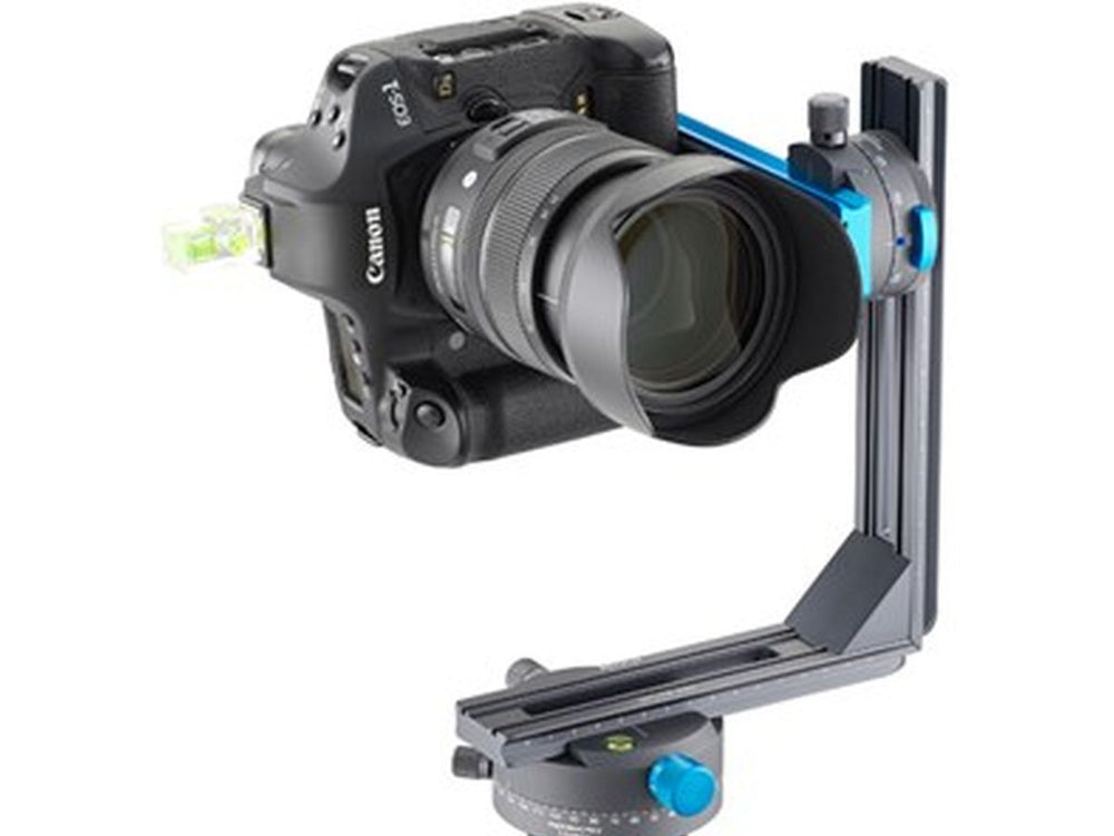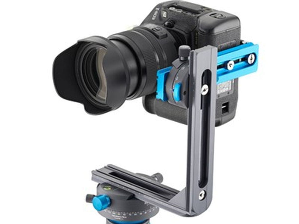 Adding to its impressive feature list is a patented (pending) adjustment that enables angled photography with click stops. There are 36 click stop positions at 10°, 24 at 15°, 18 at 20°, 15 at 24°, 12 at 30°, 10 at 36°, and 8 at 45°. The system also simplifies horizontal rotation with a 2x 180° engraving in the opposite direction.