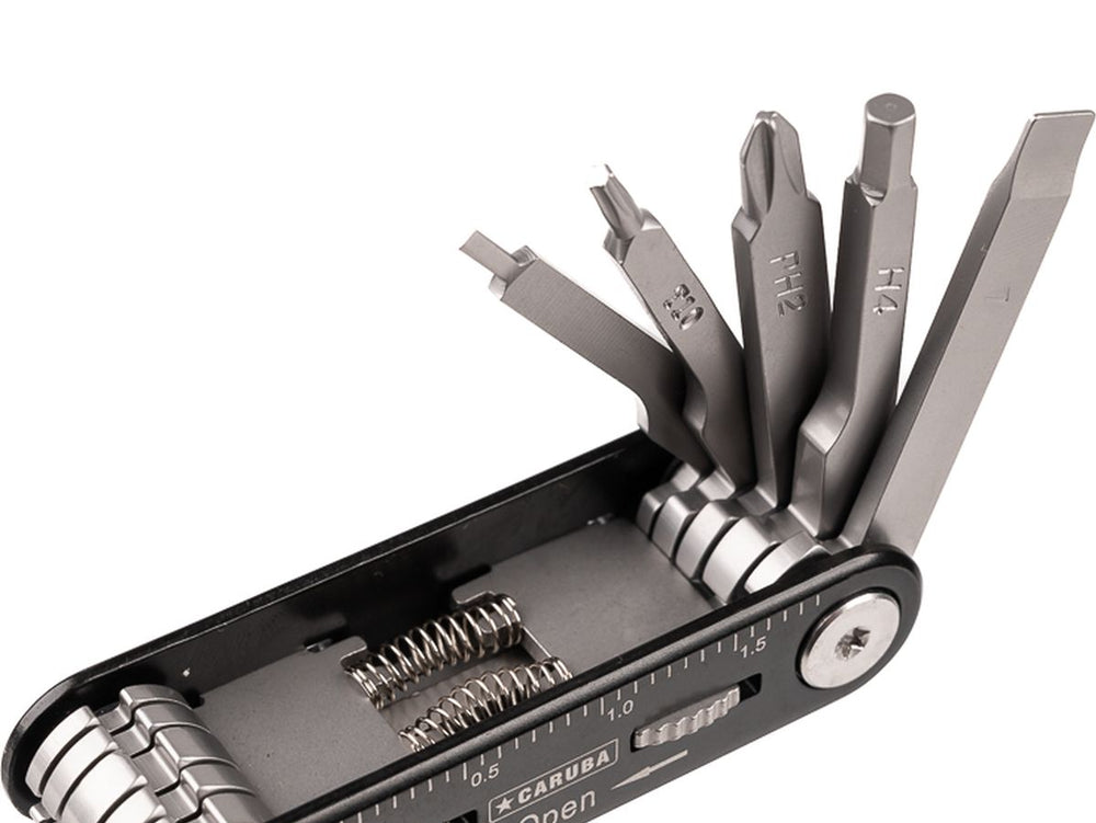 The Caruba Compact Folding Multitool Kit is a comprehensive equipment collection constructed with a sleek and compact design. Whether you're embarking on a photographic quest, exploring the wilderness, or simply require an assortment of daily life tools, this Caruba Compact Folding Multitool Set stands ready for duty.