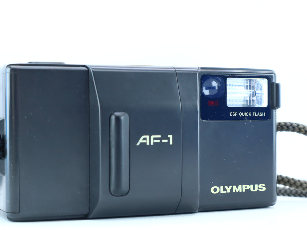 Condition Used – Good condition This Olympus AF-1 has been thoroughly tested and is in good working order. The Zuiko 35mm lens is clear and produces crisp results. The autofocus and auto-exposure systems are accurate, and the flash fires correctly when needed. The self-timer function is fully operational. The weatherproof seals are intact, and the camera body shows light signs of use consistent with its age, maintaining its sleek and functional aesthetic.