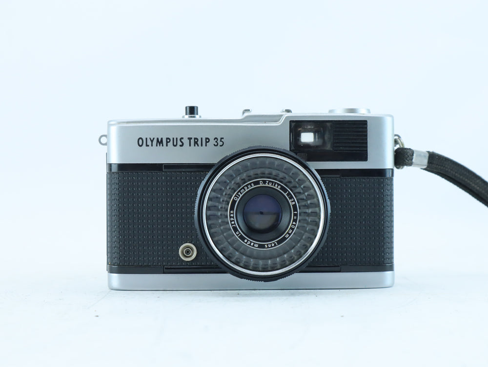 Condition Used – Good condition This Olympus Trip 35 has been thoroughly tested and is in good working order. The D.Zuiko lens is clear, without fungus or deep scratches. The selenium light meter is fully functional; the "red flag" pops up in the viewfinder when there is insufficient light, preventing underexposed shots. The shutter fires correctly and the aperture blades are snappy. The camera body shows some cosmetic wear and minor surface marks consistent with its age, but it remains a reliable and attractive example of this classic model.
