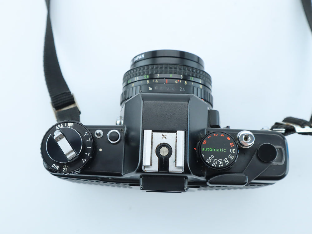 Used – Good condition. The camera shows minor signs of use but is fully functional. The lens is clean, with smooth focusing and aperture rings. Shutter speeds and light meter have been tested.