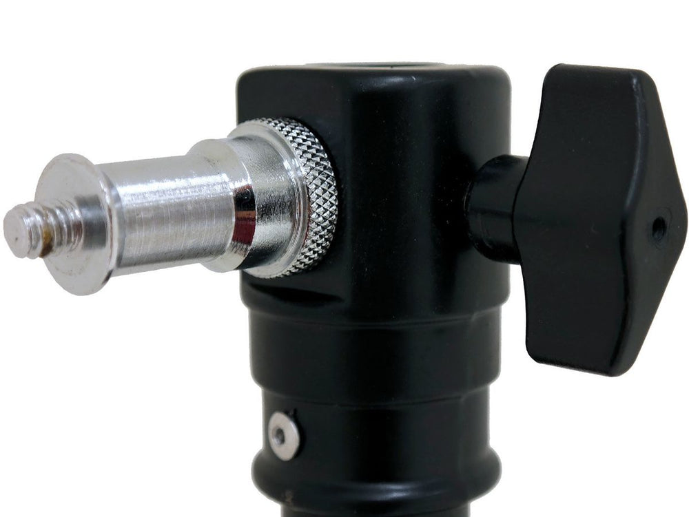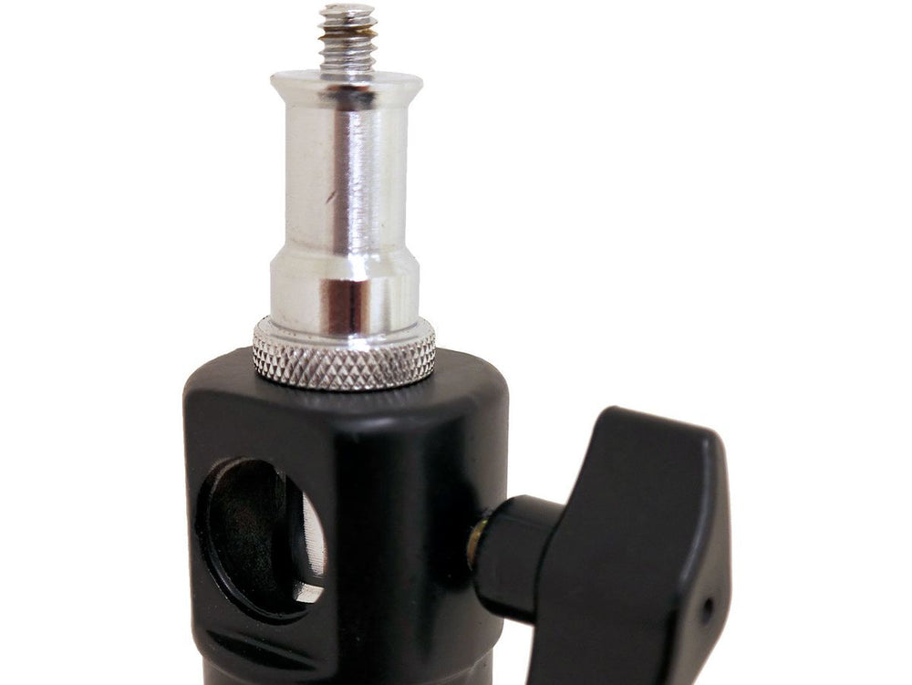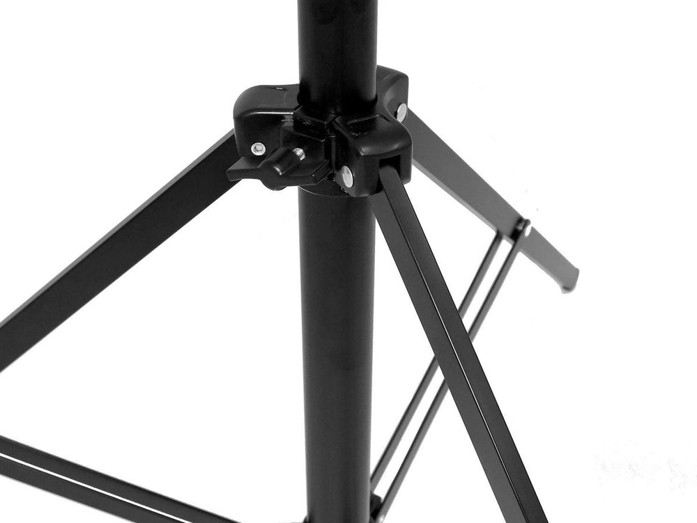 When folded, this muscular piece of equipment measures merely 96 cm in length. It is fabricated from rust-free steel while the lock mechanisms are constructed from aluminum. Thanks to the practical Put & Go principle feature, setting up and moving this stand becomes an effortless process. Simply position the light stand, lower the cross with the three legs, secure it with the turn knob, and it's immediately stable with its legs spread out. Due to its heavy-duty structuring, the Caruba Rapidstand proves ideal for more challenging tasks. It indeed provides a steady pedestal for studio lights or flash heads.