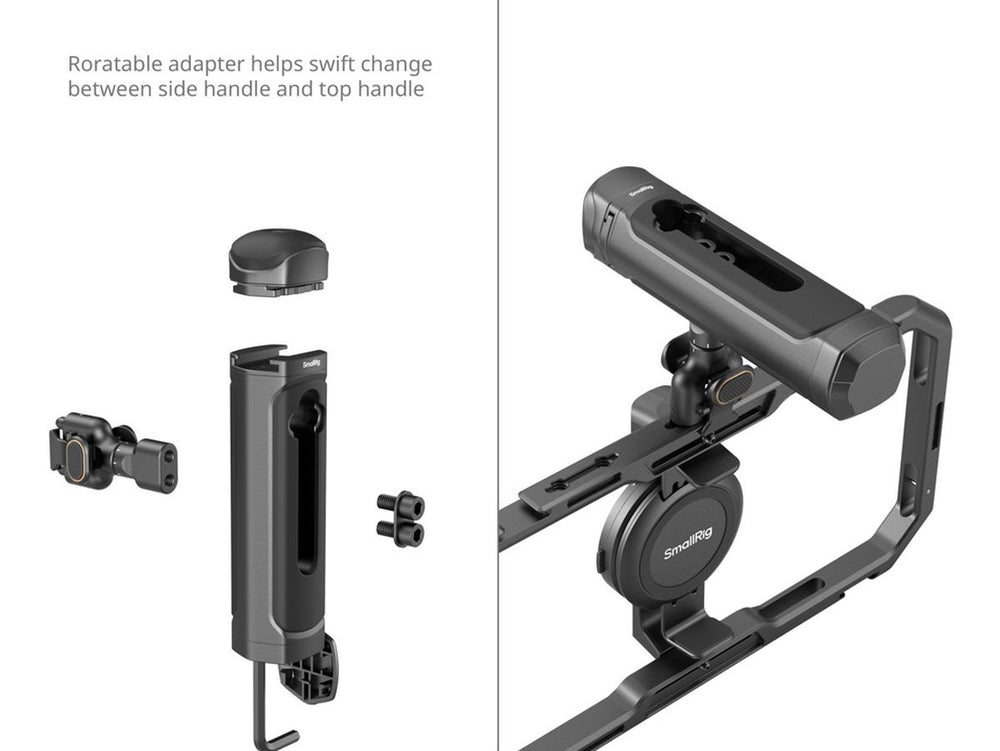 - Rotating side grip provides seamless and unlimited rotation, ensuring a comfortable grip from various angles, functioning as both a side and top grip through different mounting methods.