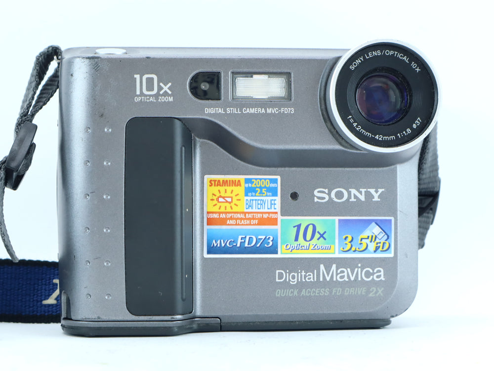 With its 0.3MP CCD sensor, 10x optical zoom lens, and built-in flash, it was once a go-to choice for home users and educators. Today, the MVC-FD73 stands as a fun and functional collector’s item or a quirky tool for creative retro-style projects.