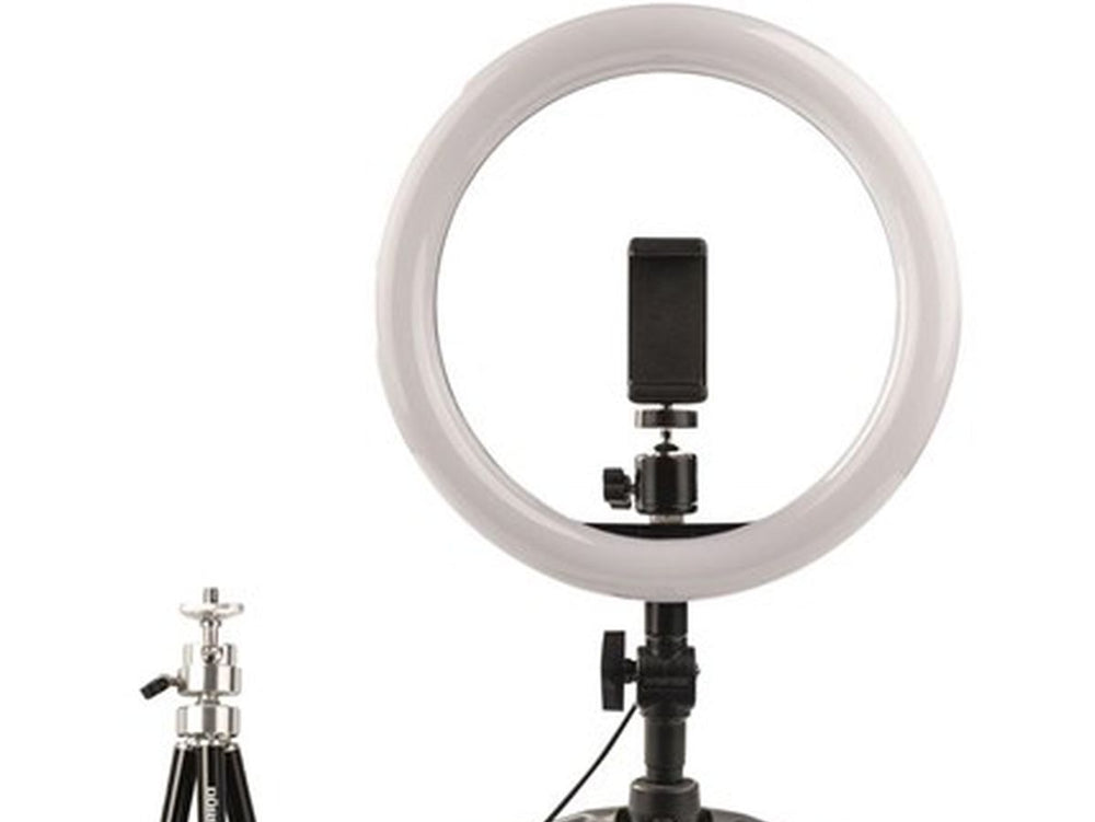 The Dorr Vlogging Kit VL-26 is a complete vlogging package incorporating a table tripod, a ring lamp, and a mobile device holder that would facilitate any aspiring professional vlogger to get started. It is particularly suited for applications such as creating flawless beauty vlogs.
