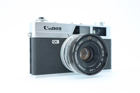 The Canon Nanonet QL 25 is a rare and intriguing 35mm viewfinder camera, equipped with Canon’s innovative Quick Load (QL) system for fast, foolproof film loading. It features a sharp and fast Canon SE 45mm f/2.5 fixed lens, ideal for everyday photography with natural perspective and pleasing rendering.