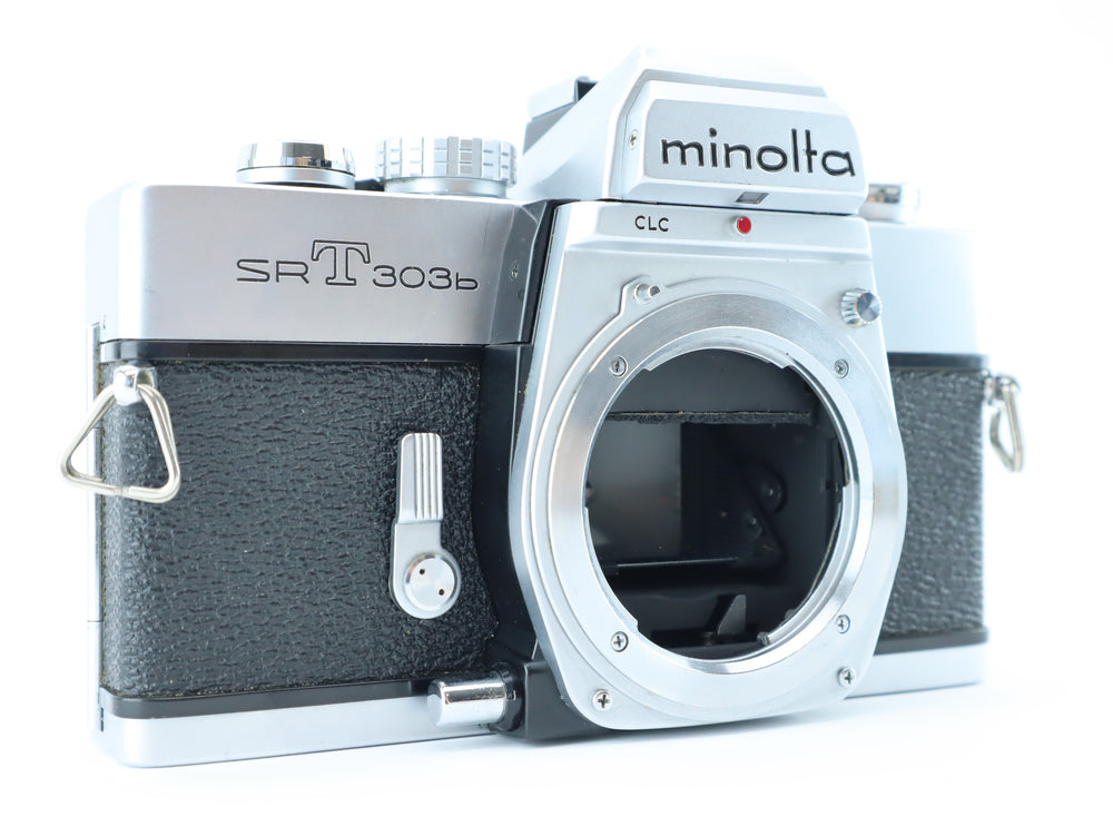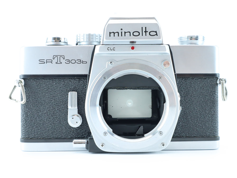 The Minolta SRT303b is a rugged and fully mechanical 35mm SLR camera from the golden age of manual photography. Known for its precision, reliability, and clean design, it features a match-needle metering system visible in the bright viewfinder and full manual control over exposure. Compatible with all Minolta SR, MC, and MD lenses, the SRT303b is ideal for analog photographers who value hands-on control and vintage build quality.