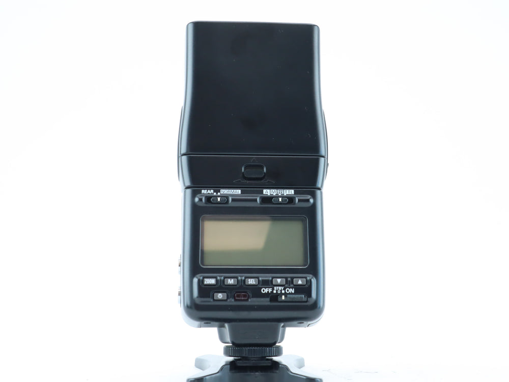 Flash unit shows light signs of use. Tested and fires correctly. Zoom, tilt, and controls function as expected. Battery compartment clean.