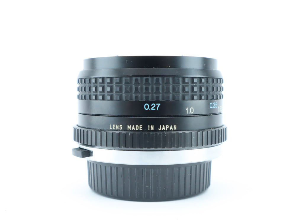 The lens is in good condition with visible signs of use. Optics are clean with no haze or fungus. Focus and aperture rings move smoothly. Aperture blades are clean and oil-free.