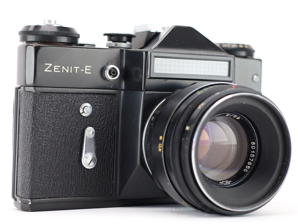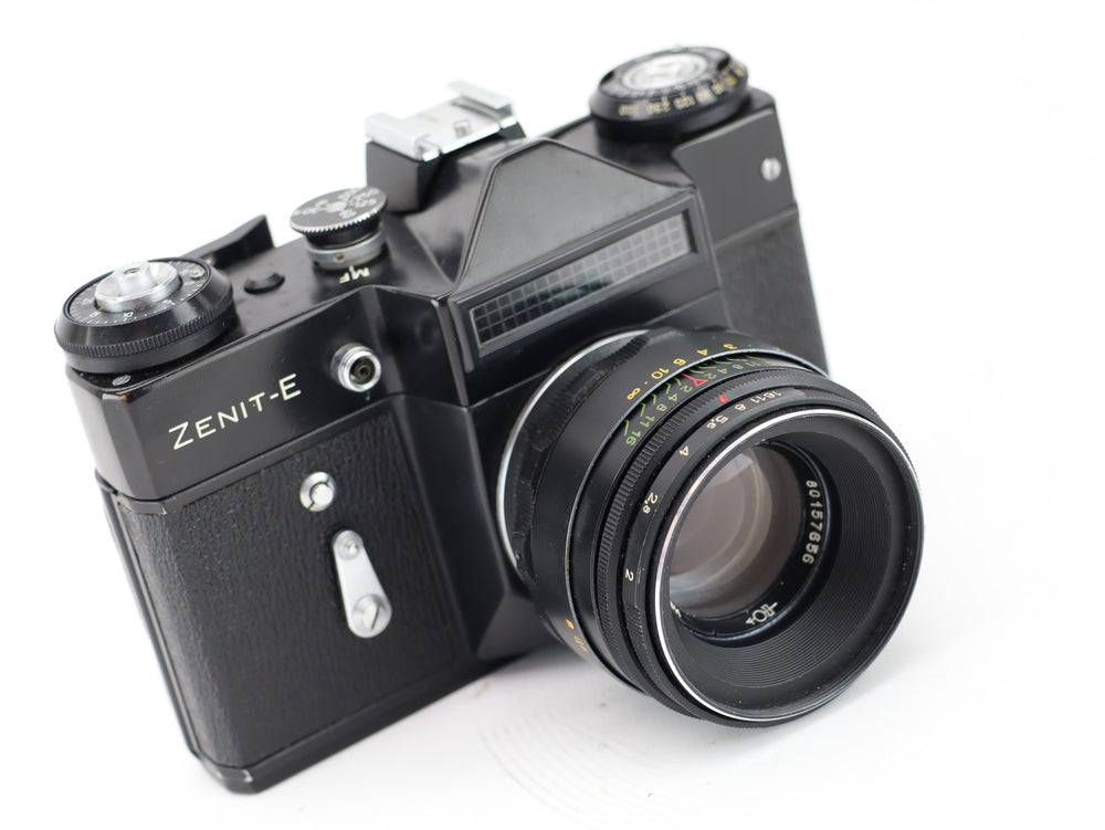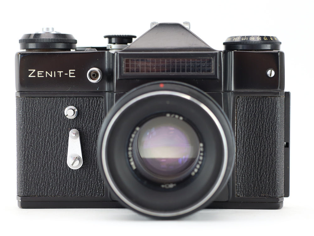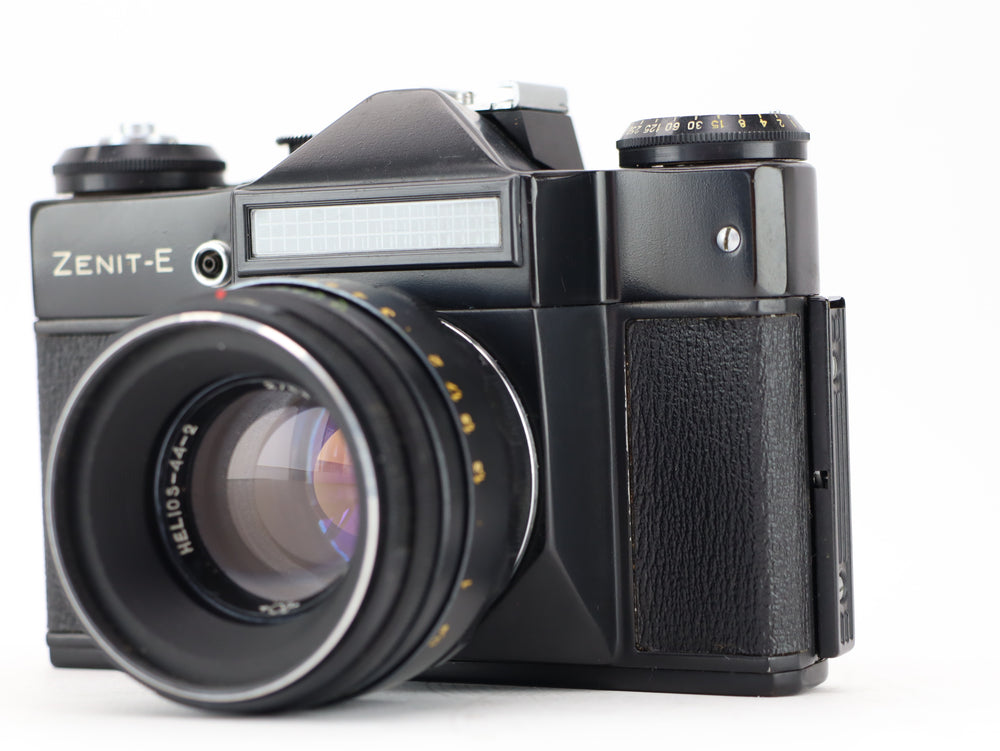 The Zenit-E with Helios-44-2 lens is a classic Soviet-era 35mm SLR camera renowned for its robustness and iconic Helios lens known for its unique bokeh and sharpness. Introduced in the 1960s, the Zenit-E is a reliable and straightforward manual camera, making it a favorite among vintage camera enthusiasts.